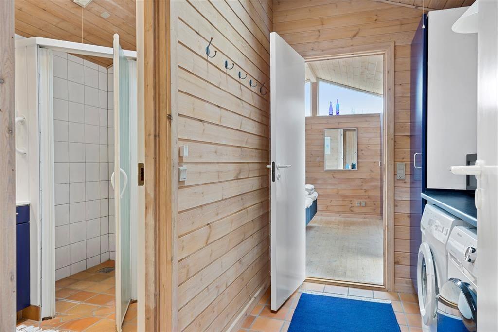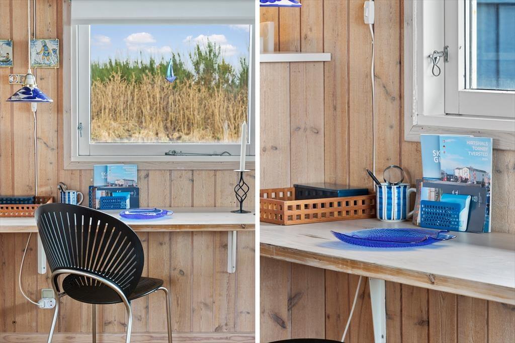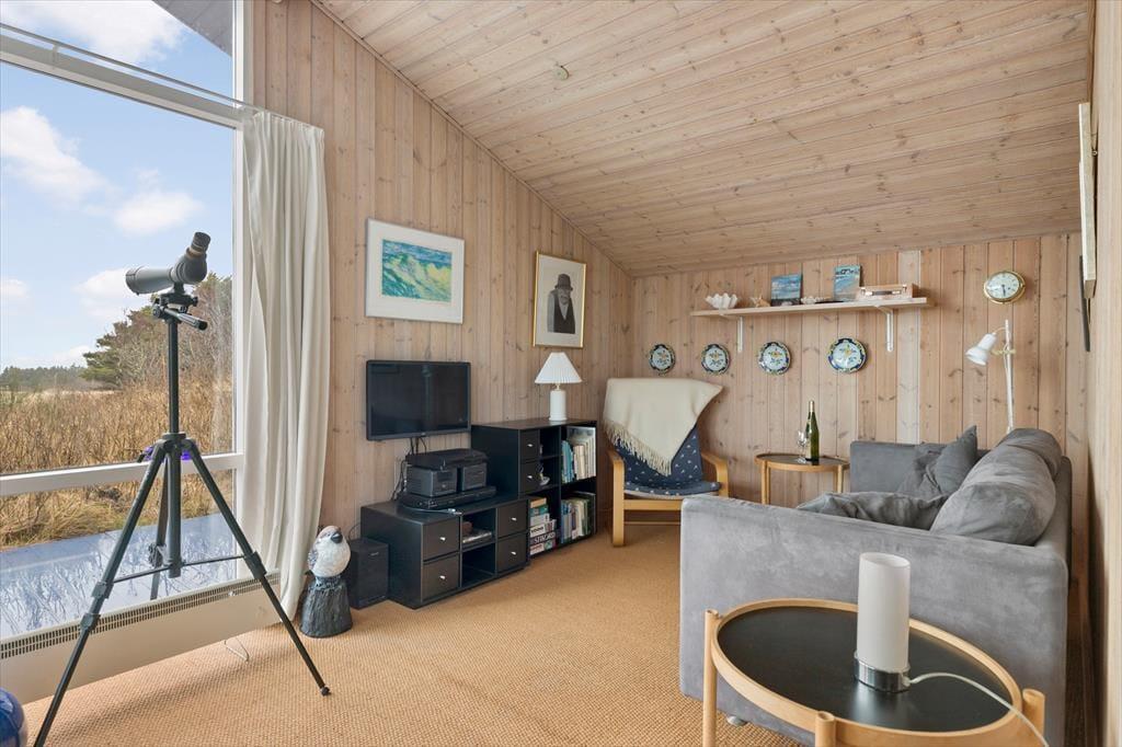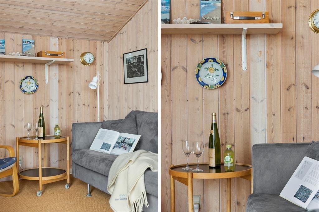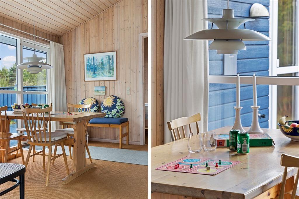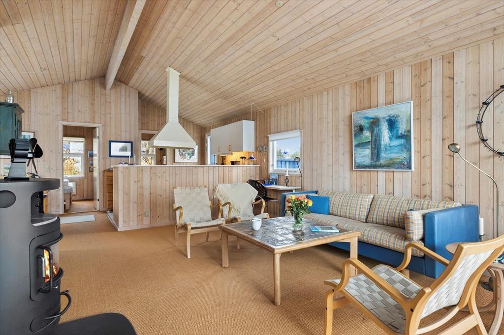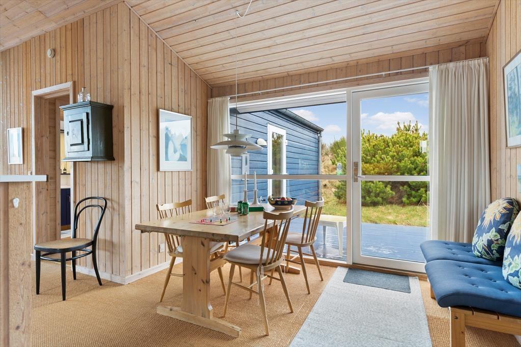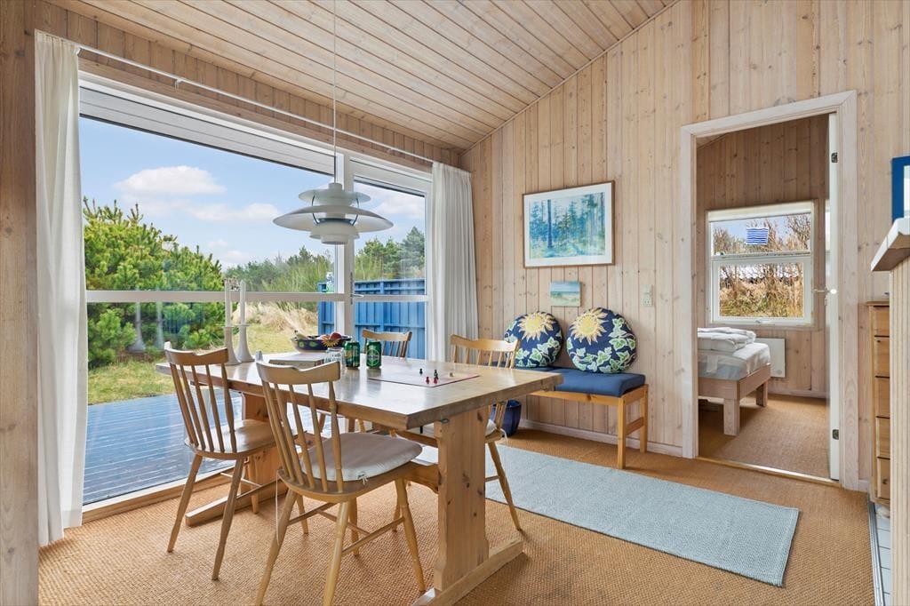 Inden døre byder sommerhuset på en lys og behagelig atmosfære, hvor store vinduespartier lukker dagslyset ind og giver en skøn fornemmelse af at være tæt på naturen – også når du opholder dig indenfor. Indretningen er enkel og indbydende med fokus på hygge og funktionalitet, så det er let at føle sig hjemme fra første stund. Stuen bliver hurtigt familiens naturlige samlingspunkt, og her kan du nyde lange feriemorgener med kaffe i koppen eller rolige aftener, hvor brændeovnen knitrer og spreder varme og stemning på køligere dage. Efter en lang dag med strandture eller vandreture i klitplantagen kan du forkæle dig selv med en tur i saunaen, der giver den helt særlige wellness-fornemmelse, som hører ferien til. De to toiletter er en ekstra komfortabel detalje, der gør hverdagen mere afslappet, når I er flere samlet. Og med hund tilladt kan hele familien – også den firbenede – være med til at skabe ferieminder.