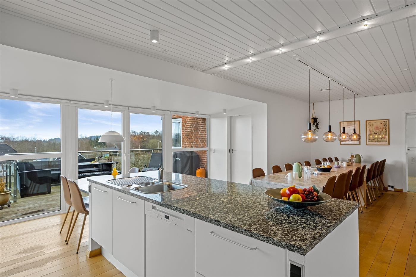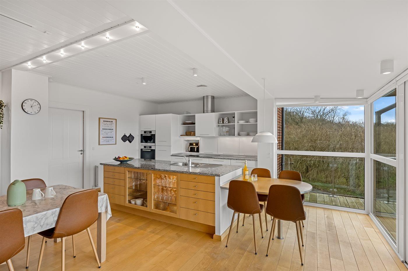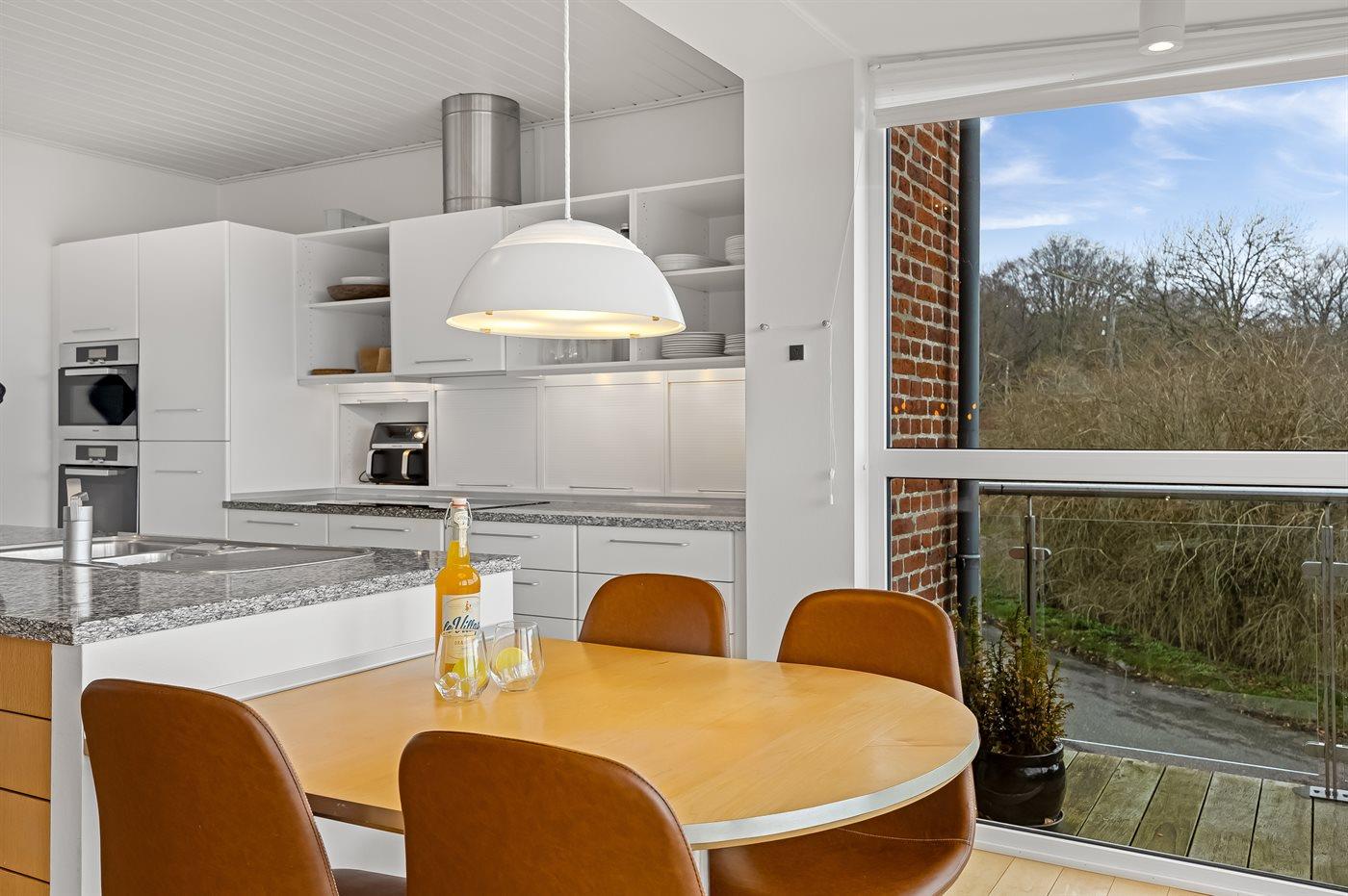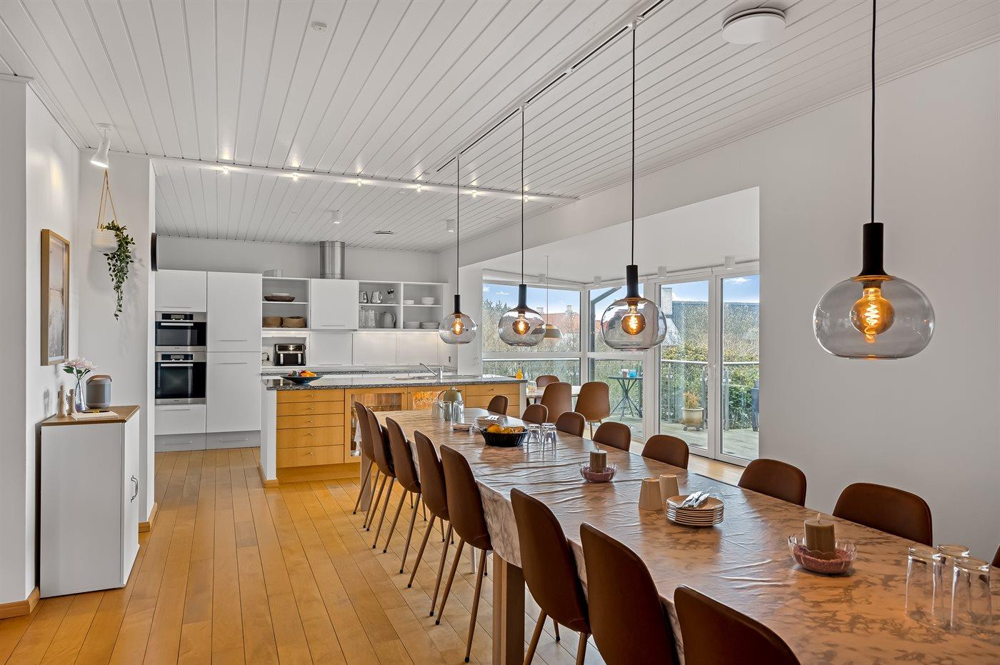 Køkkenet er udstyret med 1 køleskab. Der er 4 induktionskogeplader, 2 varmluftovne, mikrobølgeovn samt opvaskemaskine Der er gulvvarme i køkkenet.