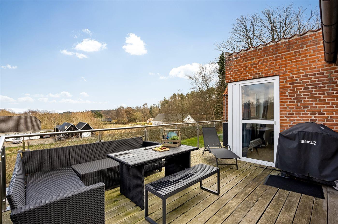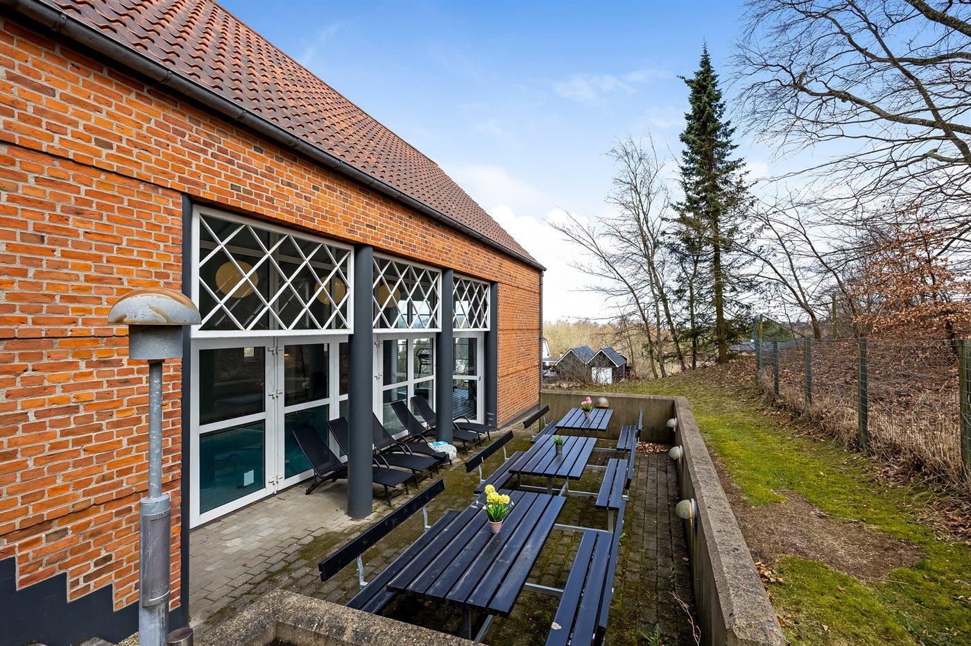 Ferieboligen er beliggende på en 5000 m² stor naturgrund. Der er 7000 m til havet. Nærmeste forretning er beliggende i en afstand af 2000 m. Der er en golfbane i en afstand af 15000 m. Til ferieboligen hører åbent terrasseareal. Desuden er der overdækket terrasse. Udgang til altan. Der er redskabsrum. Gynge. Sandkasse. Trampolin. Legetårn. Rutchebane. Fodboldmål. Grill til rådighed. Der er installeret stik til opladning af elbil. Parkering ved ferieboligen.