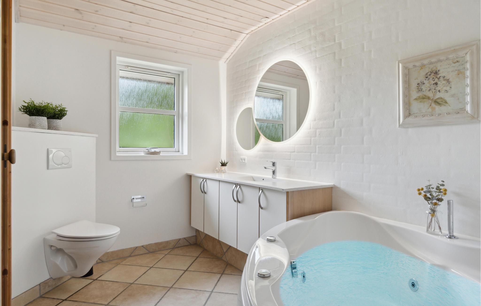 Velkommen til dette rummelige hus, der ligger på en vidunderlig grund og ikke langt fra strandene i det nordlige Jylland. Her får I en fantastisk base for en ferie med masser af sjov og afslapning for alle aldre. Indretningen fremtræder flot og indbydende over hele linjen med pæn kunst på væggene, komfortable møbler og et fuldt udstyret køkken, hvor familiens kokke kan kræse om livretterne. Prikken over i'et er dog pool-afdelingen, hvor børnene kan plaske rundt i den rummelige pool, mens de voksne tager den lidt med ro i spabadet eller saunaen.