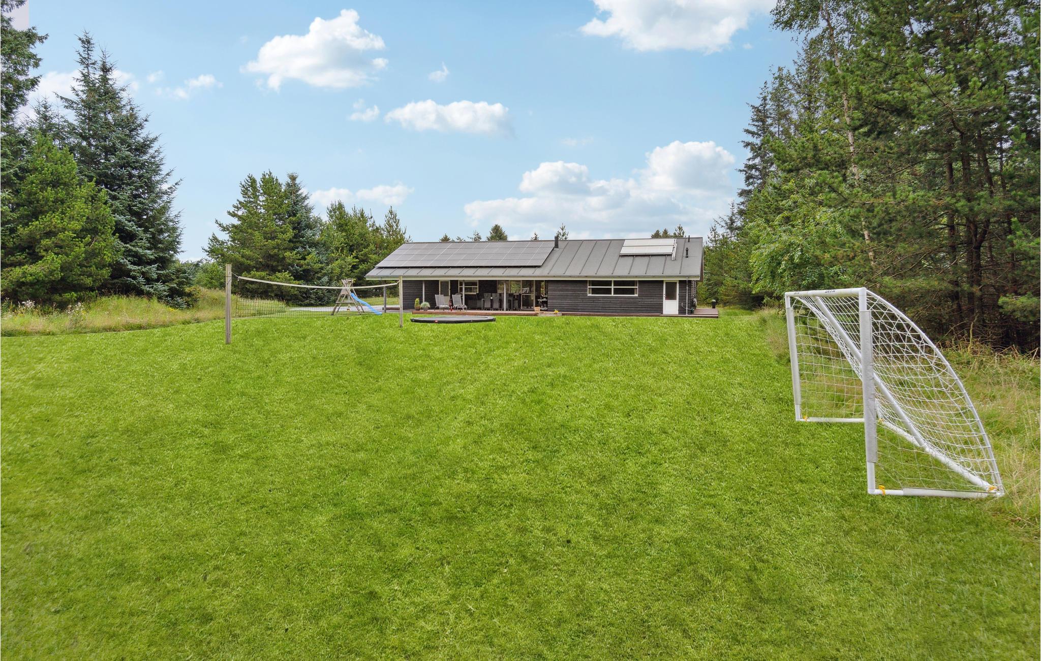 Udeområdet er tilsvarende fantastisk. Her er der masser af plads for børnene at boltre sig på, en trampolin og et veludstyret legeområde med en lang svævebane, der indbyder til mange timers sjov måske endda også for de voksne. Udfordr flokken til en fodbold- eller volleykamp på den store grund, inden I smider lidt lækkert på grillen og nyder en saftig bøf under aftensolen med et godt glas vin.