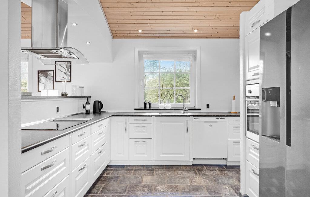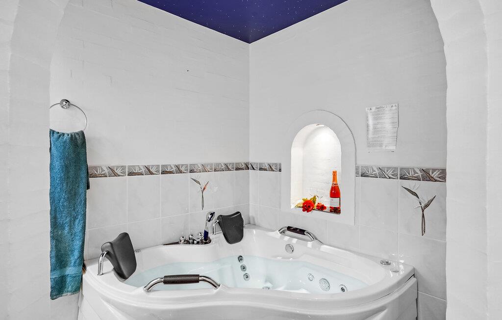Velkommen i dette fine, rødmalede sommerhus, som er lyst og venligt indrettet og åbent til kip, hvilket skaber en behagelig atmosfære. Huset gør et flot indtryk, og med masser af plads er det ideelt til f.eks. to familier. Her får I ikke bare flotte rammer for ferien, men også gode muligheder for at slappe af i spabadet eller i den udendørs pool.