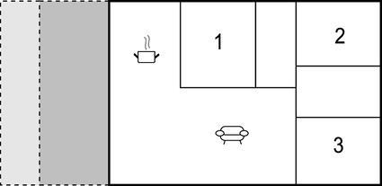 Komb. spisestue/køkken - 2 Sovepladser. (Enkeltseng(e)).