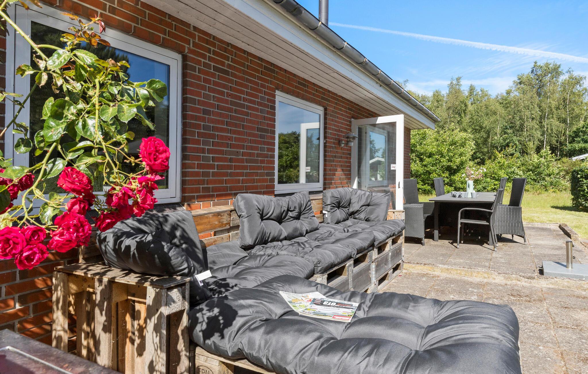 Velkommen til jeres komfortable feriehus i idylliske omgivelser. Lad jer overraske af det lyse og smagfulde interiør, hvor både børn og voksne vil føle sig hjemme. Lav mad sammen i det moderne køkken, og nyd jeres måltider ved det lange spisebord. Om aftenen kan I slappe af i den hyggelige sofa, streame en film eller læne jer tilbage i de komfortable lænestole med en god bog.