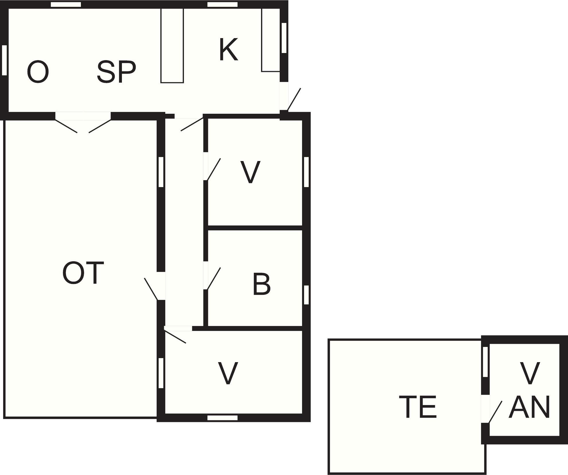 2 Soveværelser: (1DS)+(2S)