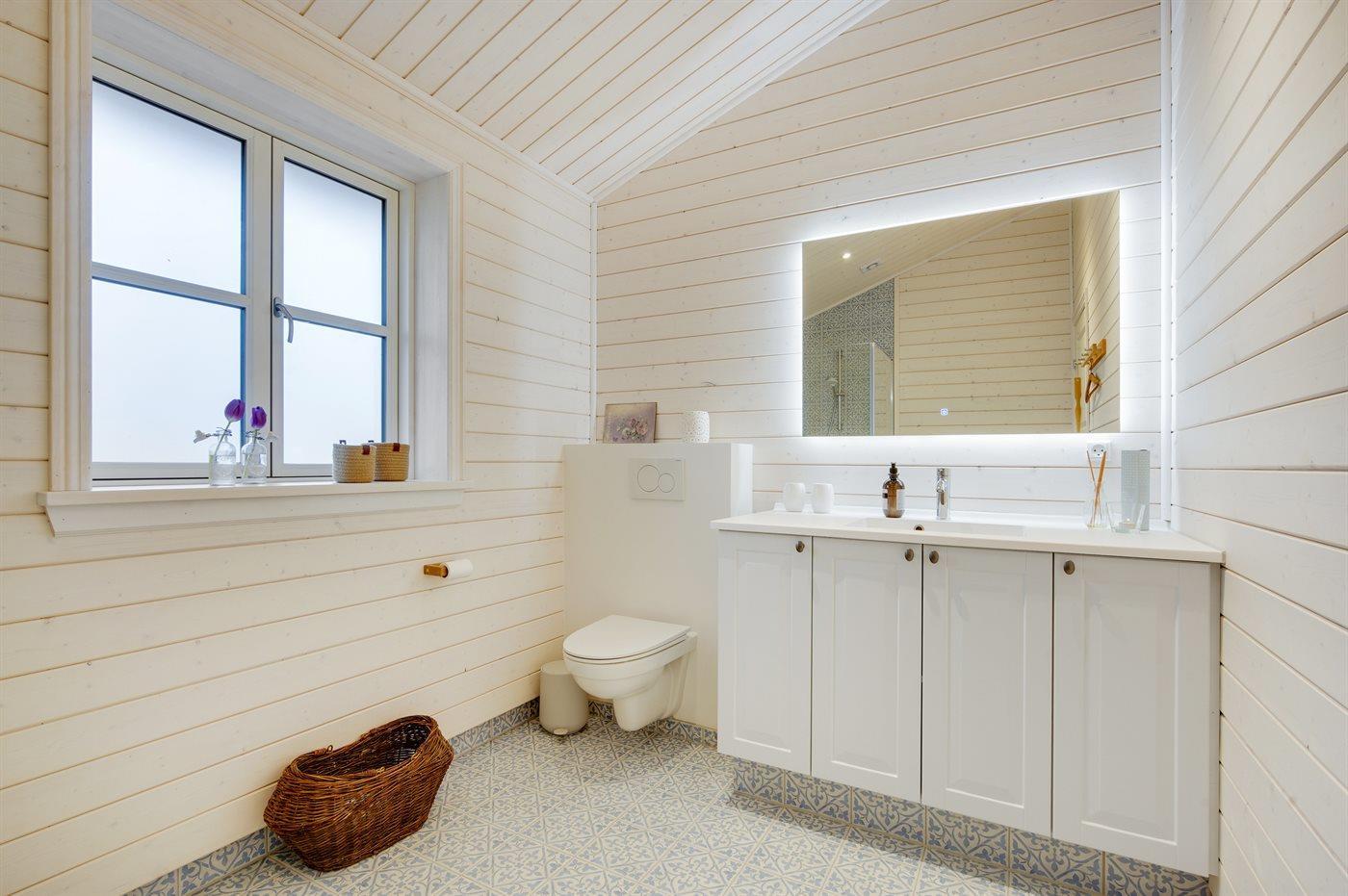 Der er 2 badeværelser med bruseniche og 2 toiletter. Der er gulvvarme på 2 badeværelser.