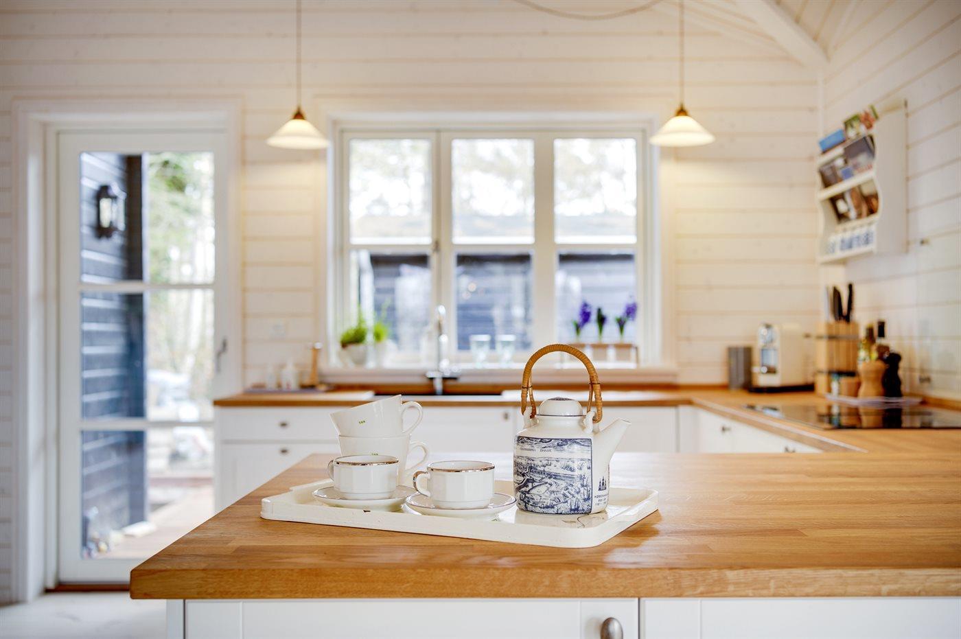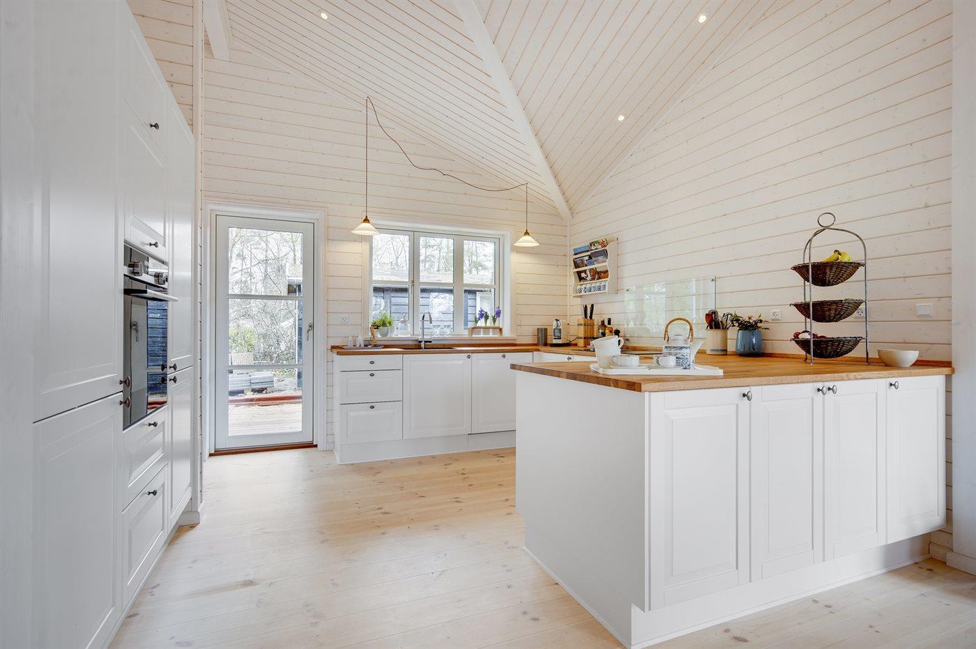Køkkenet er udstyret med 1 køleskab. Der er 4 induktionskogeplader, varmluftovn samt opvaskemaskine.