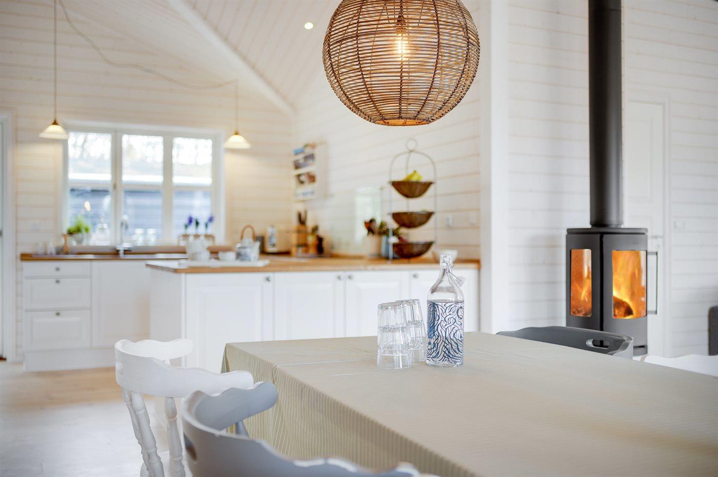Sommerhuset egner sig til 8 personer. Ferieboligen er på 119 m² og er bygget i 2021. Det er tilladt at medbringe 1 husdyr. Ferieboligen er udstyret med 1 energivenlig luft til vand varmepumpe. Der er gulvvarme i entréen. Ferieboligen har vaskemaskine. Tørretumbler. Frysekapacitet på 60 liter. Der er desuden brændeovn.
