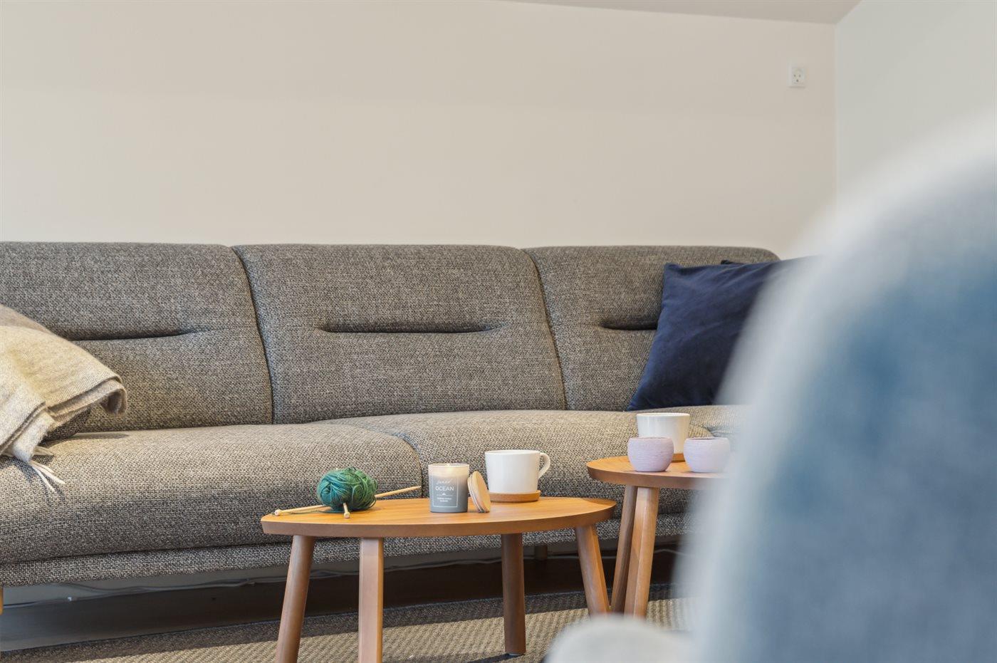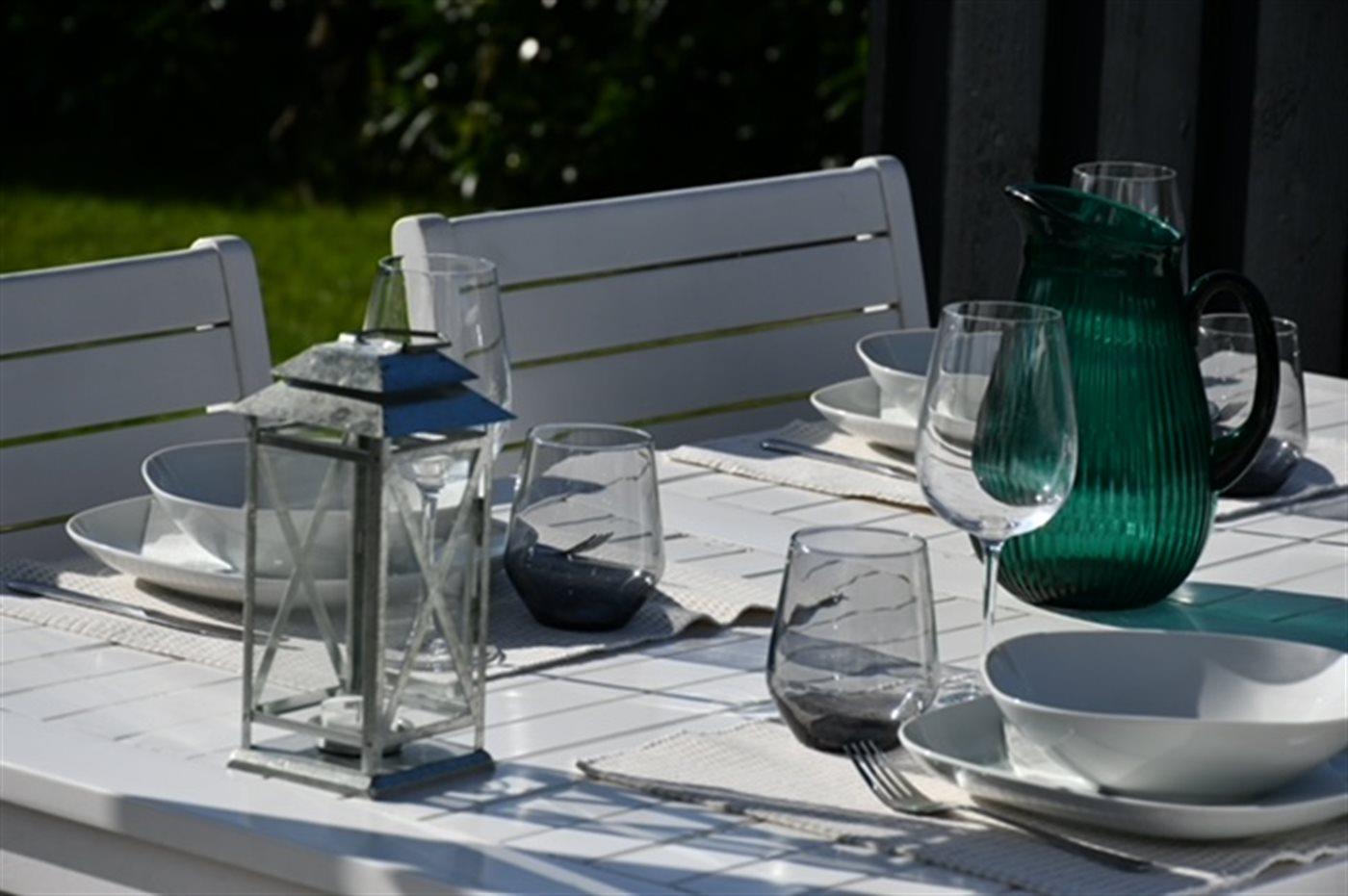 Hyggeligt sommerhus med lys stue, stor terrasse og tæt på strand ved Udsholt Strand.