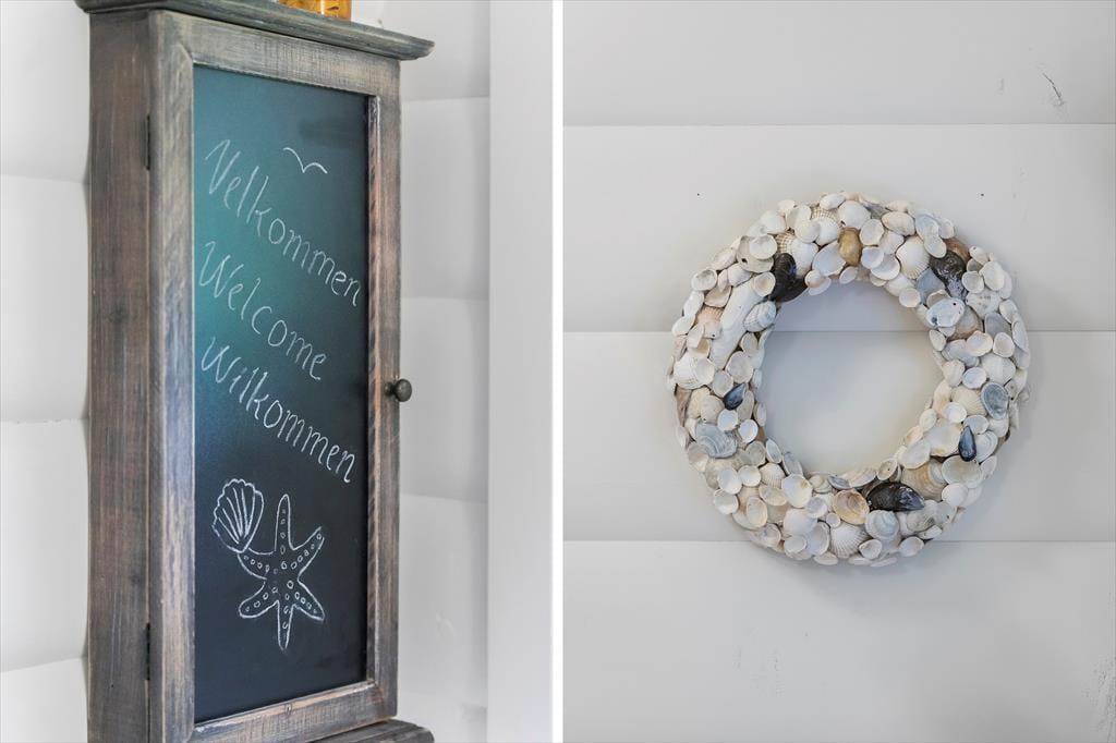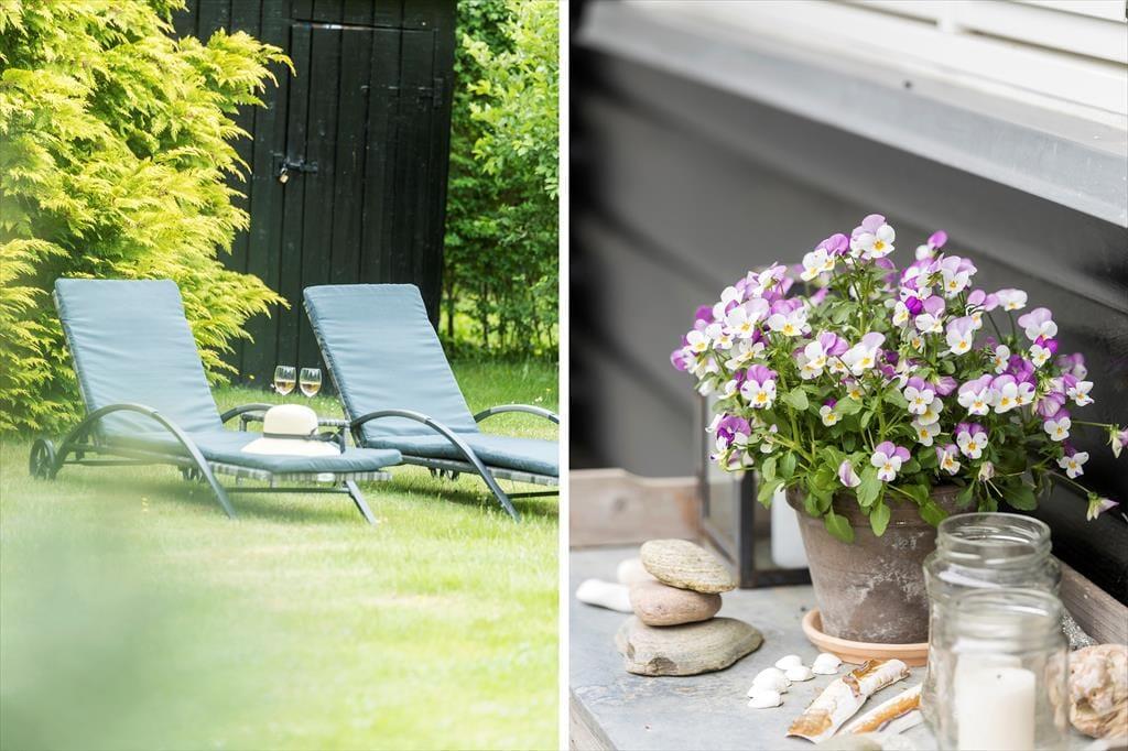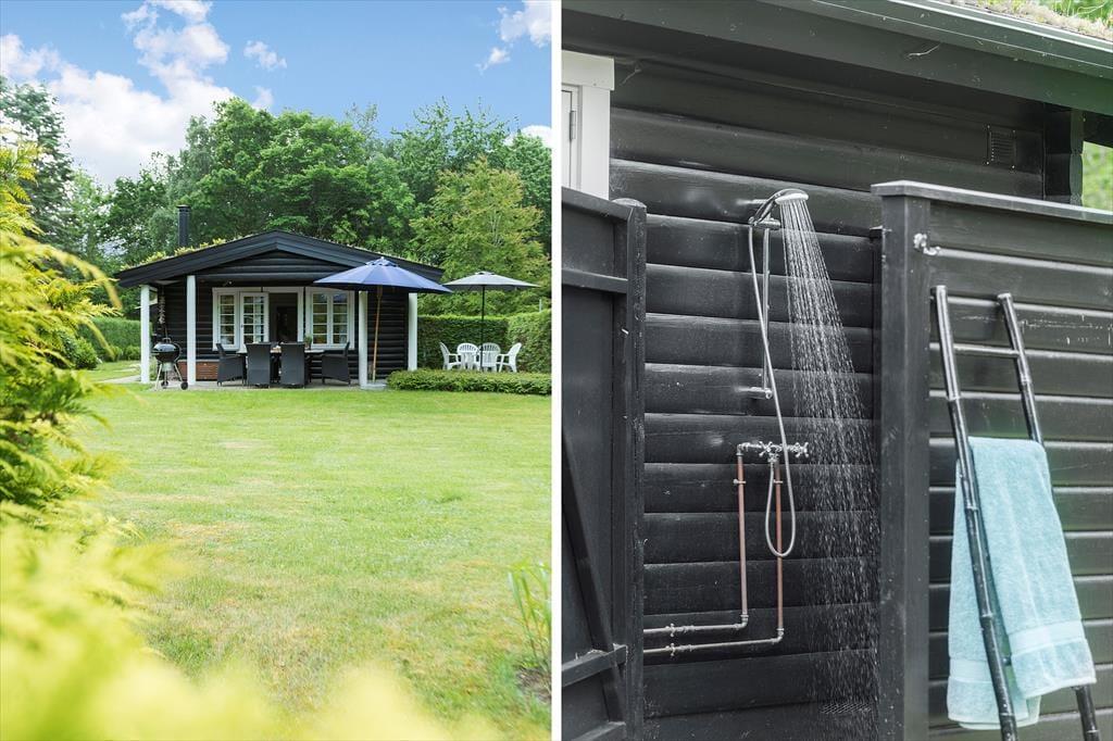 Udenfor venter et dejligt terrasseområde, både åbent og overdækket, hvor du kan slappe af i de komfortable havemøbler og nyde udsigten over den smukke have. Her er der rig mulighed for både sol og skygge, samt hyggelige grillmiddage på kulgrillen. Den udendørs bruser med både varmt og koldt vand er perfekt til at skylle sandet af efter en skøn dag på stranden.