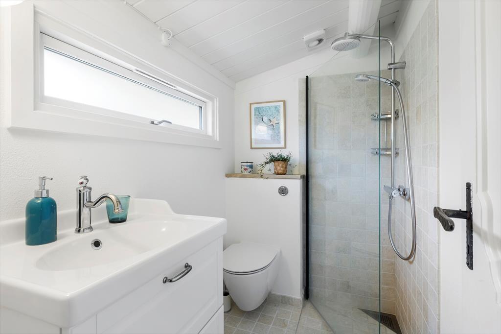 Hovedhuset rummer to soveværelser, hver med to komfortable enkeltsenge, mens annekset byder på en dejlig dobbeltseng. Badeværelset er udstyret med en bruseniche, så du kan starte dagen frisk og veloplagt.