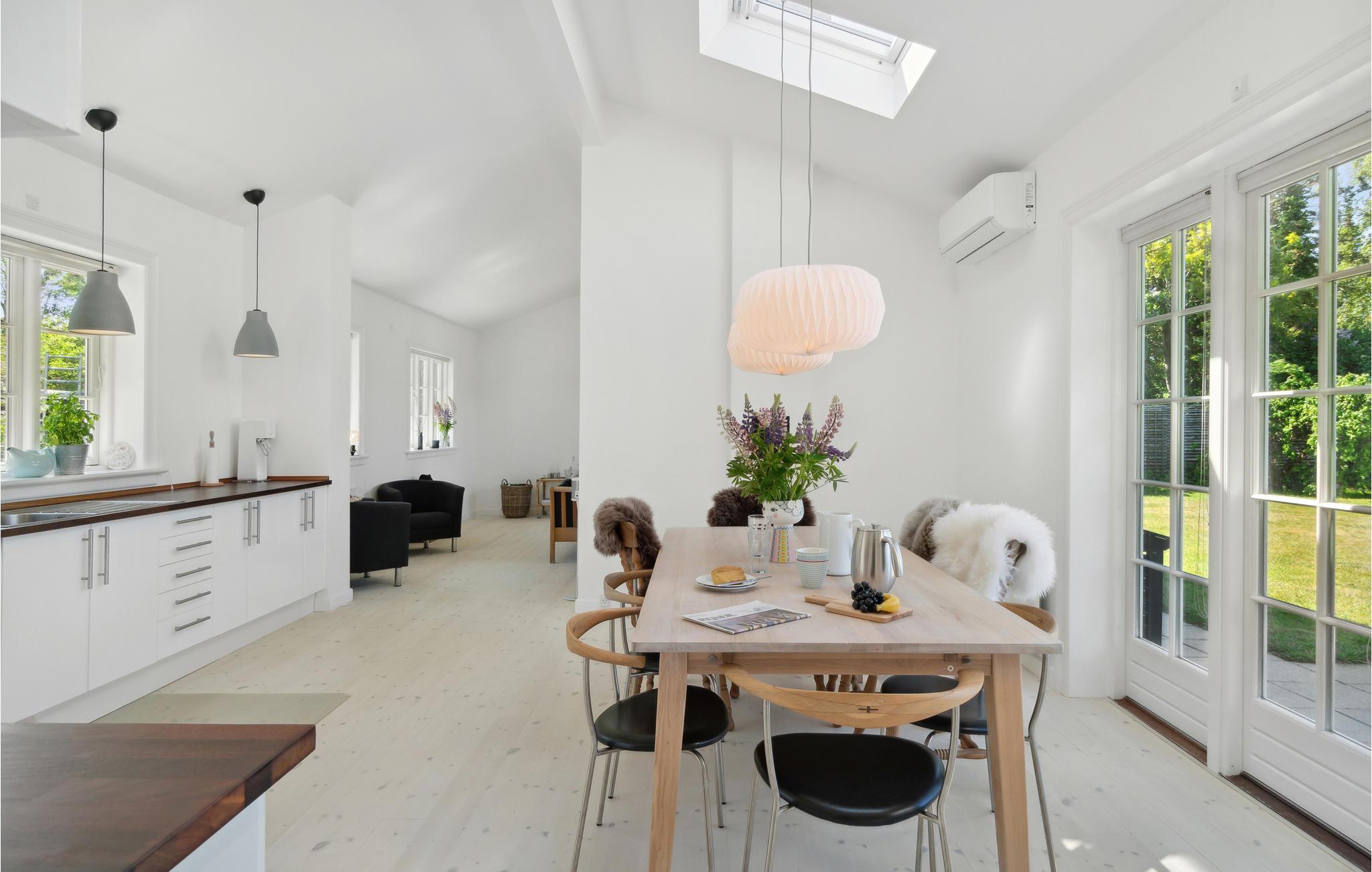 Forkæl jer selv med en dejlig pause fra den hektiske hverdag. Den stilfulde kombination af den gennemgående hvide farve, de høje lofter, den moderne og minimalistiske indretning og den store mængde af dagslys fra de store vinduer og ovenlysvinduerne giver jer en følelse af lethed, rummelighed, ro og harmoni. Her vil I genfinde jeres indre balance og nyde tiltrængt kvalitetstid. Huset byder på et meget stort og fuldt udstyret køkken, hvor der venter sjove madeksperimenter sammen med børnene. Rundt om huset er der flere skønne terrasser, hvor I kan nyde jeres sommermåltider og den velgørende sol alt efter tidspunktet på dagen. Spil fodbold eller andre spil med jeres børn i den store have. Om aftenen kan I tænde op i lanternerne og afslutte den lune feriedag med en stemningsfuld barbecue.
