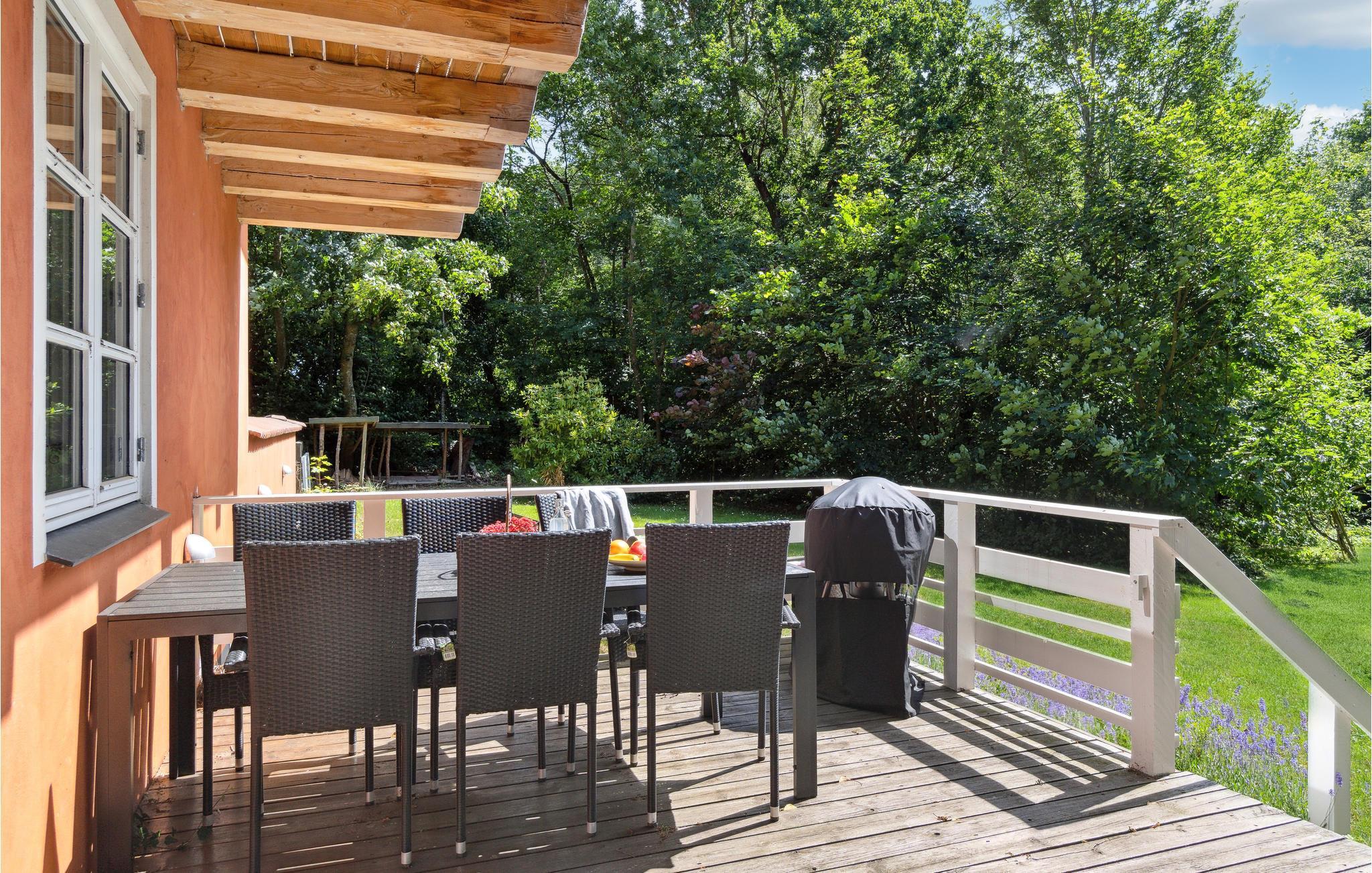 Nyd jeres morgenkaffe på husets altan eller terrasse og drik den dampende kaffe med udsigt over søen og skoven og med lidt held kan I se hjorte og andre vilde dyr. Nyd stilheden i huset, mens alle stadig sover. Efter morgenmaden kan jeres børn lege i haven. De vil elske at hoppe på trampolinen, rutsje eller spille basketball. Udnyt, at Kongernes Feriepark ligger lige ved siden af, hvilket betyder I er tæt på aktiviteter som swimmingpool, wellness, restaurant og supermarked.