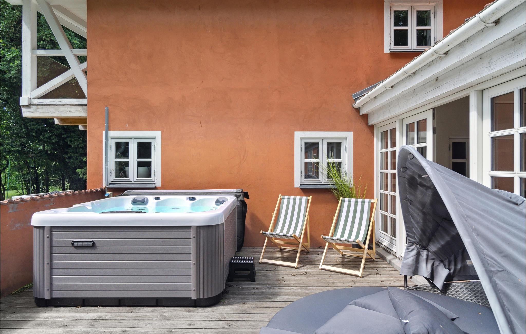 Oplev luksus og afslapning i dette smukke feriehus med sauna, spabad og nærhed til stranden i Udsholt Strand.