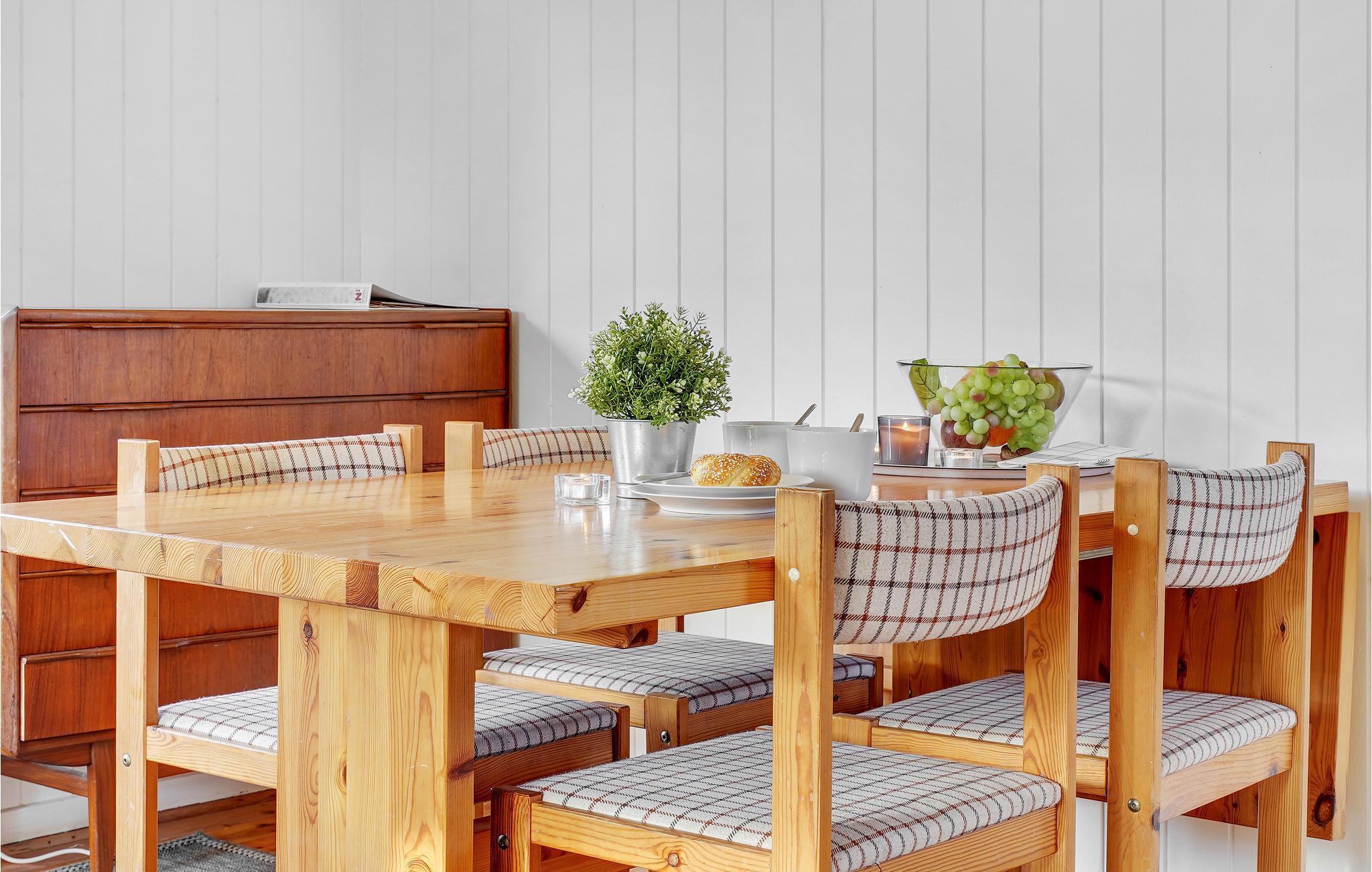 Dette lyse og klassisk indrettede feriehus byder på en hyggelig pause i rolige omgivelser. Den gennemtænkte rumindretning skaber plads til en familie eller venner. Fra stuen har I direkte udgang til den delvist overdækkede terrasse, hvor I kan slappe af på møblerne eller nyde måltiderne sammen. Hjørneejendommen tilbyder jer privatliv og lægger op til afslappende timer i den landlige idyl.