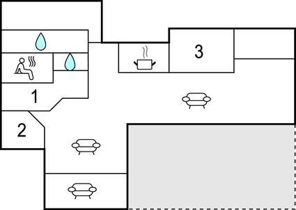 Badeværelse (nr. 1) - WC. Varmt og koldt vand. Bruser