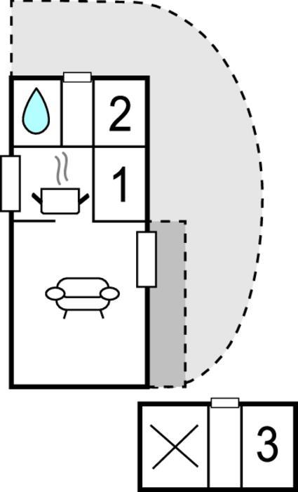 Badeværelse 3m2 (nr. 1) - WC. Varmt og koldt vand. Bruser