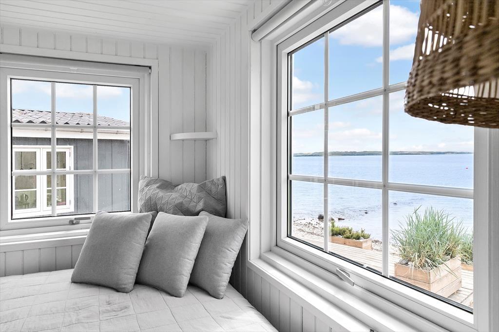 Tænk at vågne op til bølgeskvulp og havfugles kvidren! Her får du to skønne strandhuse, forbundet af en dejlig træterrasse og beliggende direkte ud til stranden – nogle dage kan du endda træde direkte fra terrassen ned i vandet. Huset er indrettet med ægte bohemestrandhusstemning og masser af hygge, og fra alle rum kan I nyde den smukke udsigt over stranden. Det ene hus har et åbent opholdsrum med stue, spisekrog og køkken i ét, en brændeovn og varmepumpe, soveværelse med dobbeltseng samt et badeværelse med bruser. Det andet hus tilbyder hele to soveværelser med dobbeltsenge, et rummeligt fællesrum og badeværelse med bruser – perfekt til både familier og vennepar.