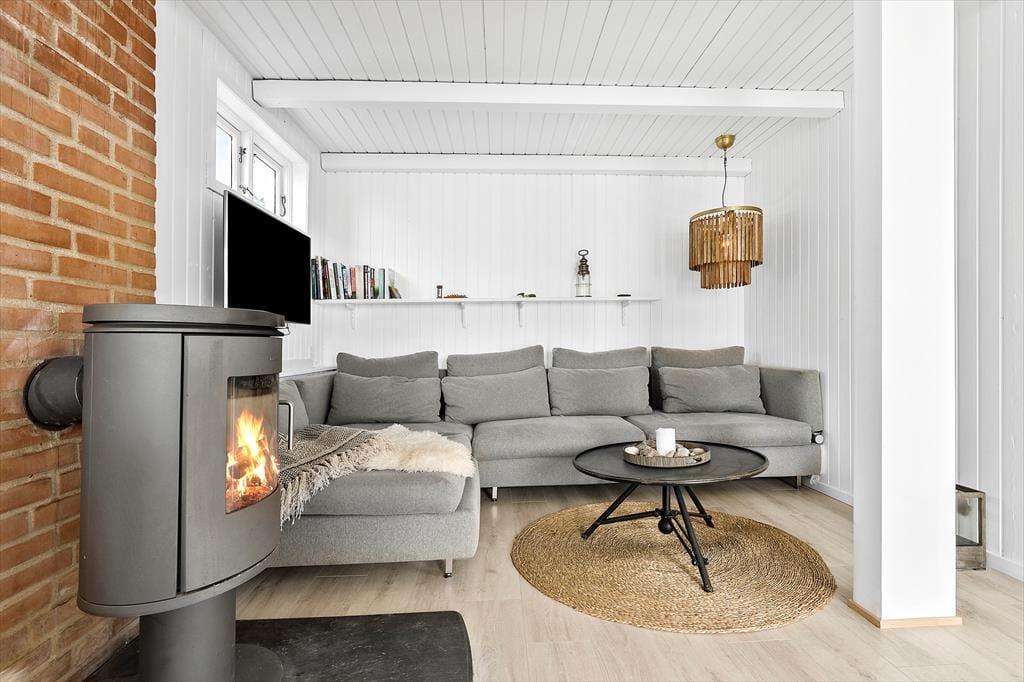 Varmepumpe / Med kølVarmepumpe opvarmer stue, køkken og soveværelse.