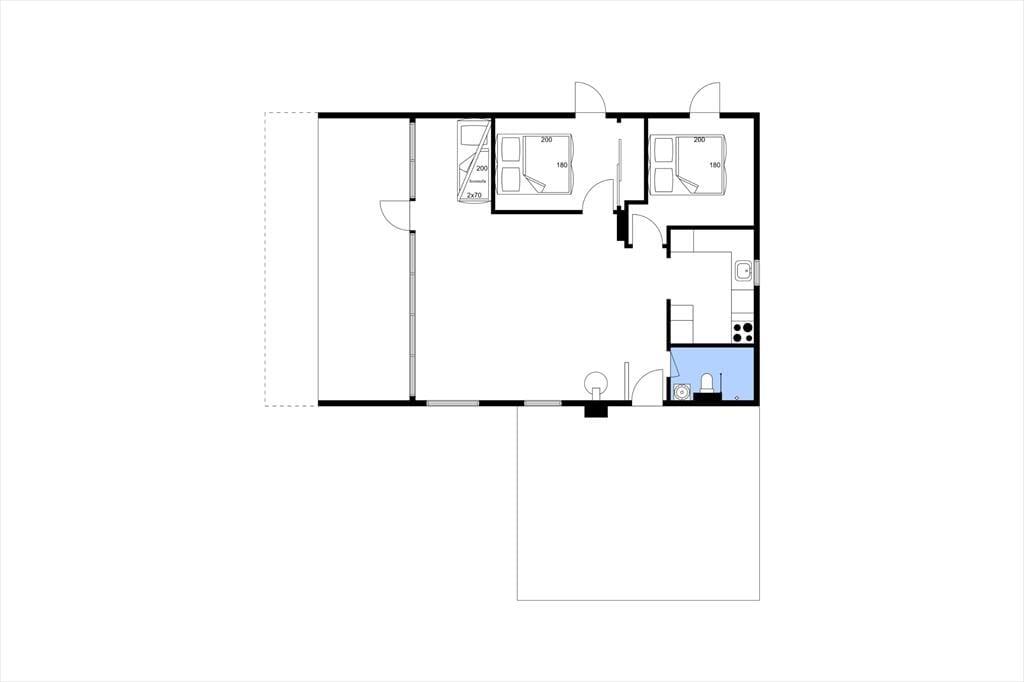 Sommerhuset ligger på en fredelig grund med god plads omkring dig – her kan du trække vejret helt ned i maven. Der er en stor terrasse med både sol og skygge, hvor du kan nyde morgenkaffen, læse en bog eller grille med familien. Den børnevenlige strand ligger bare 200 meter væk – perfekt til både badeture, sandslotte og lange gåture i aftensolen. Din hund er også velkommen, så hele familien kan være med på ferie.