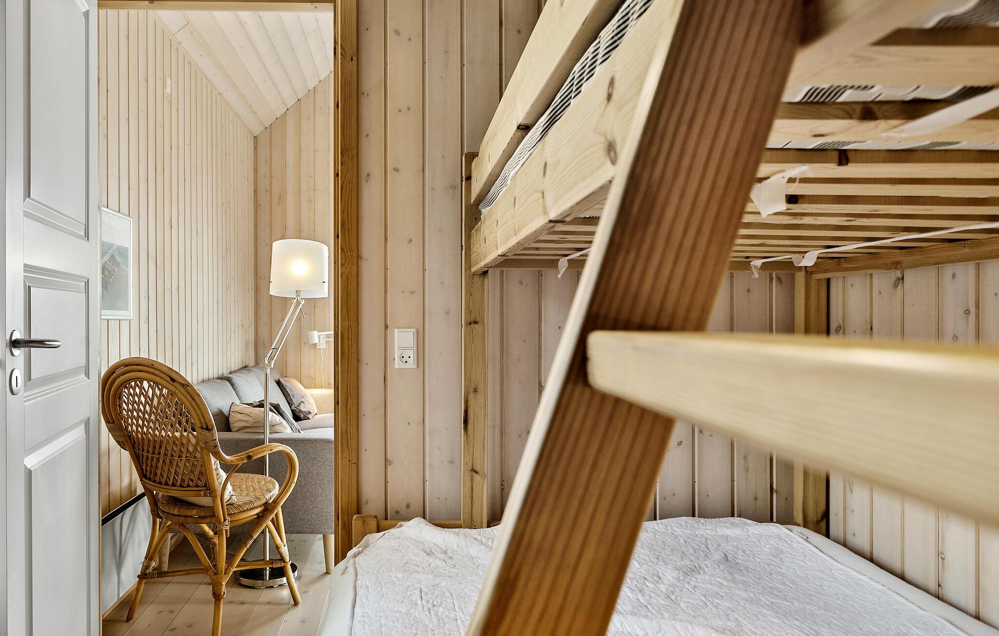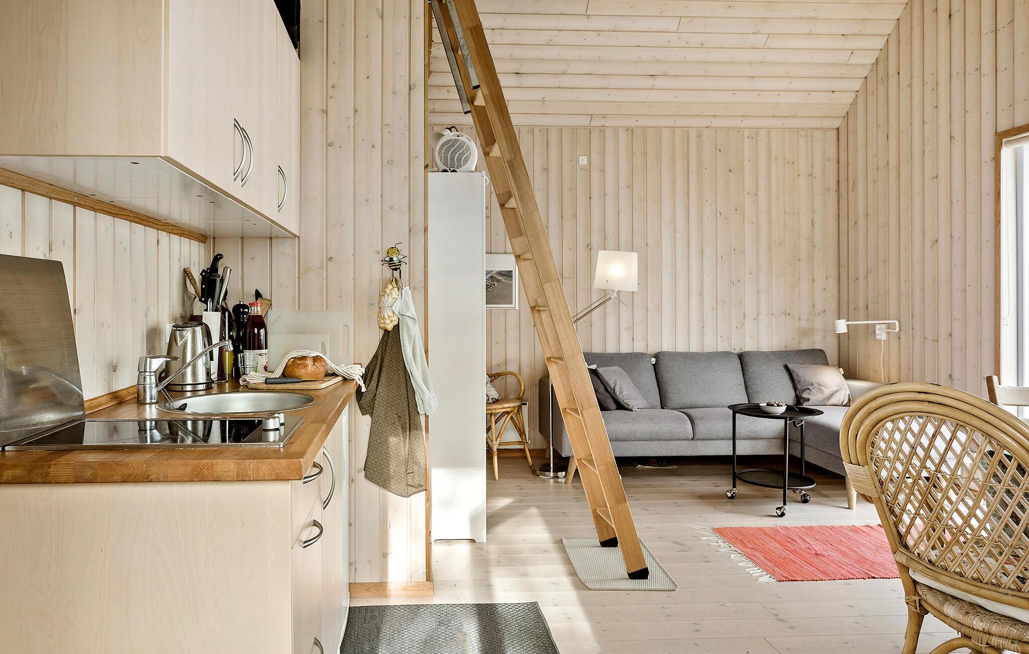 Glæd jer til ren ferieidyl ved Falsters østkyst i dette indbydende træhus med en lækker udsigt over Østersøen.