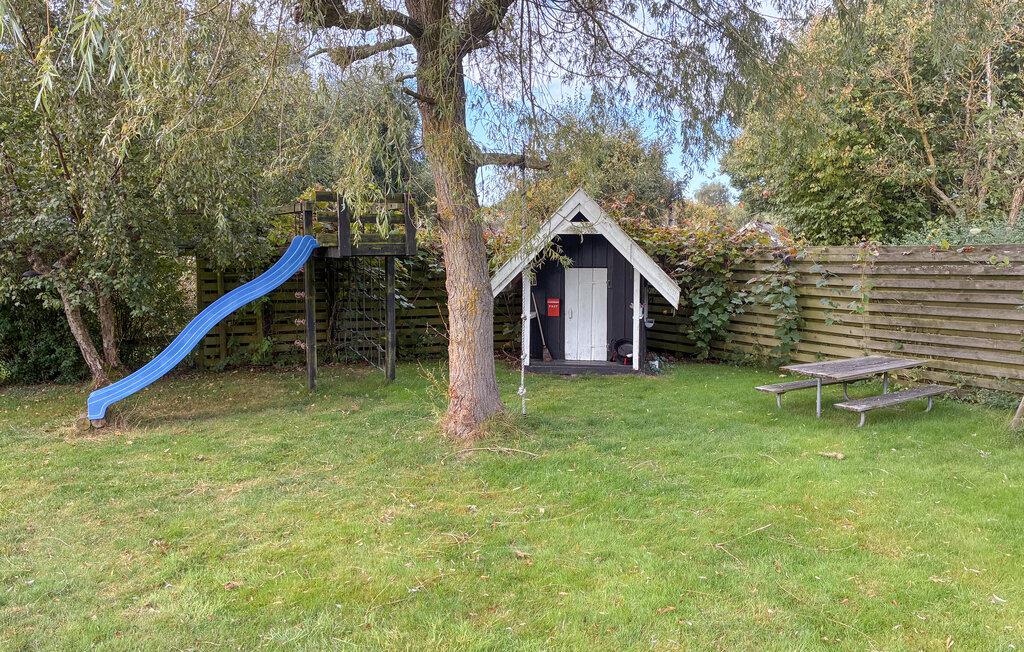 Træd ud på den store træterrasse, der er udstyret med en parasol. Nyd morgenmaden i den friske luft eller nyd blot udsigten over det omkringliggende landskab. Den velholdte have med græsplæne, legehus og rutsjebane giver børnene masser af plads til at lege, mens de voksne kan slappe af på havemøblerne.