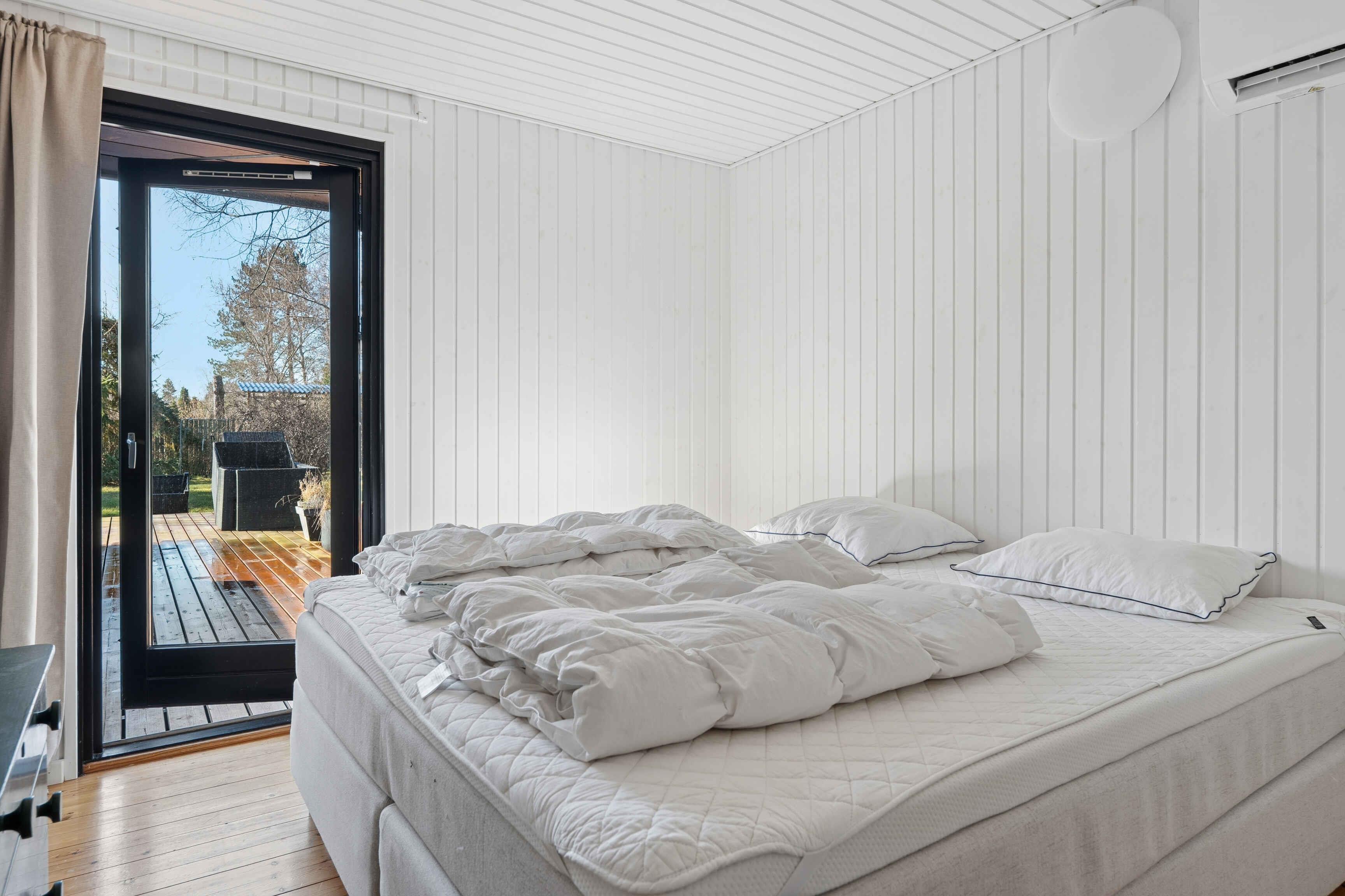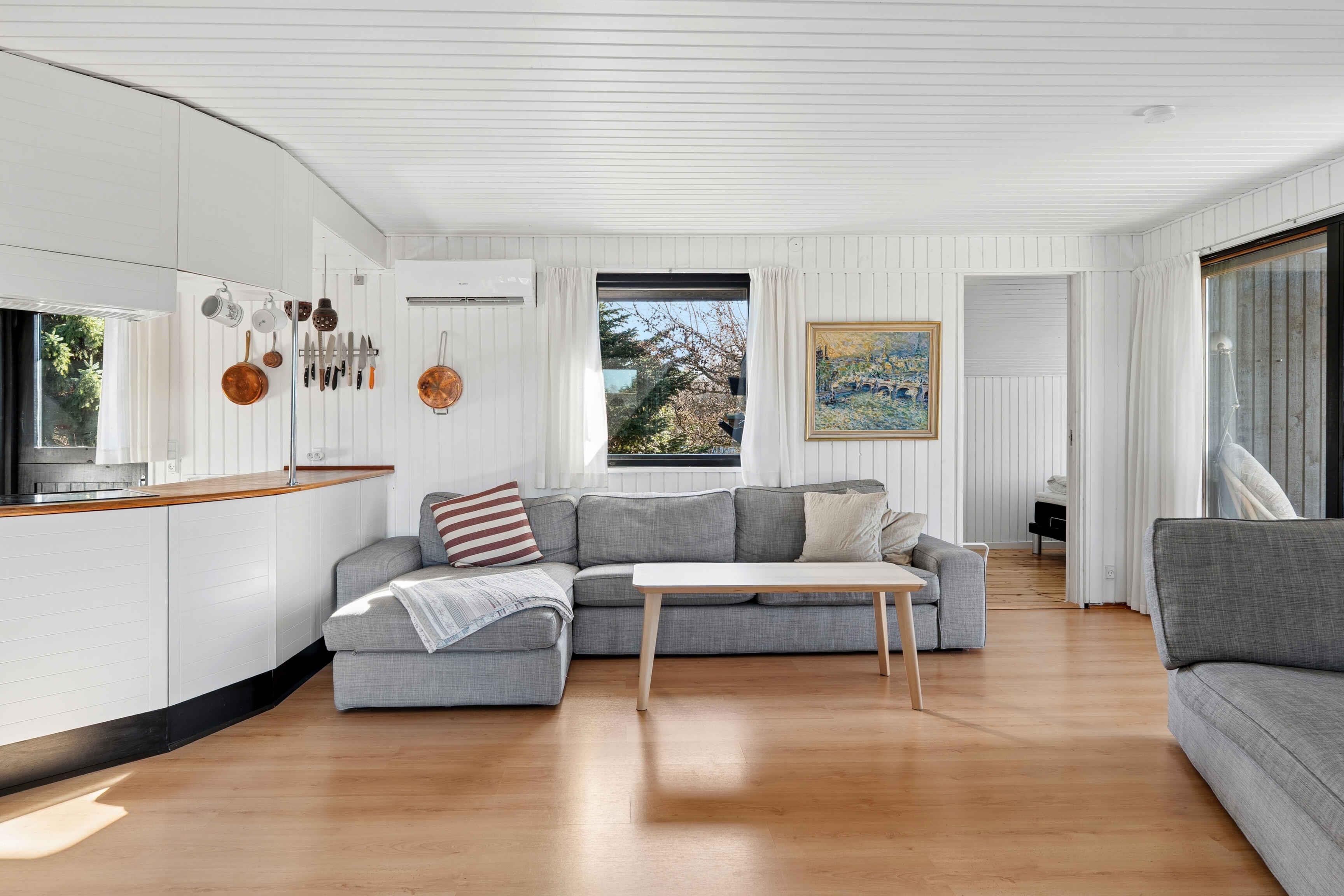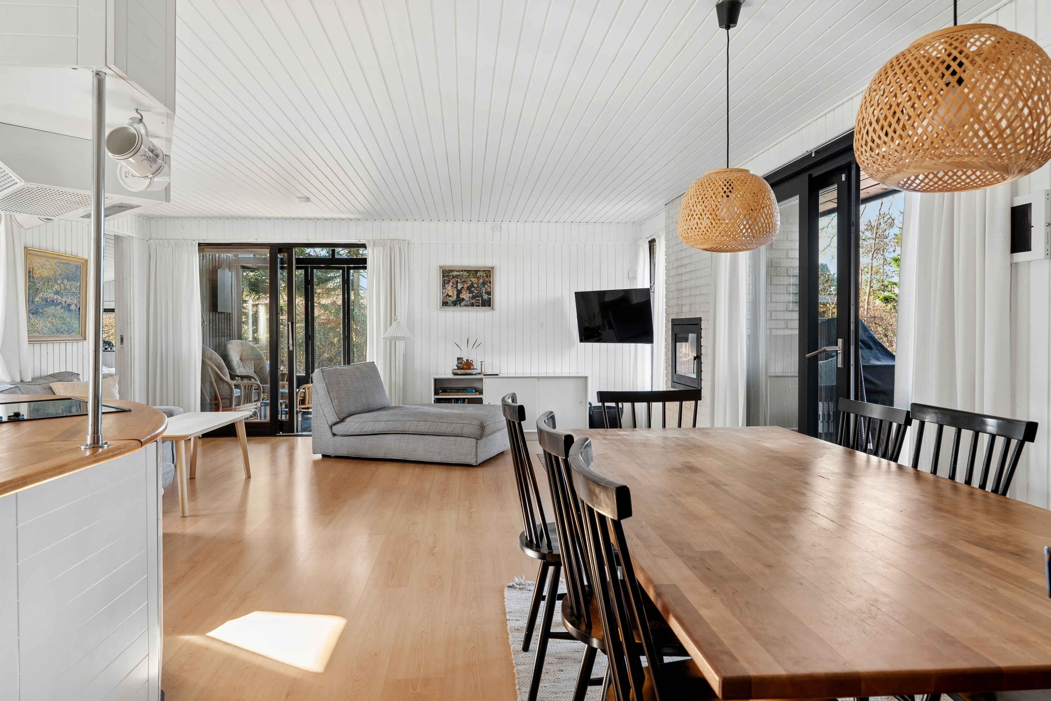 Sommerhus i Lupinerkvarteret med vildmarksspa, pejs og to terrasser tæt på vand og legeplads.