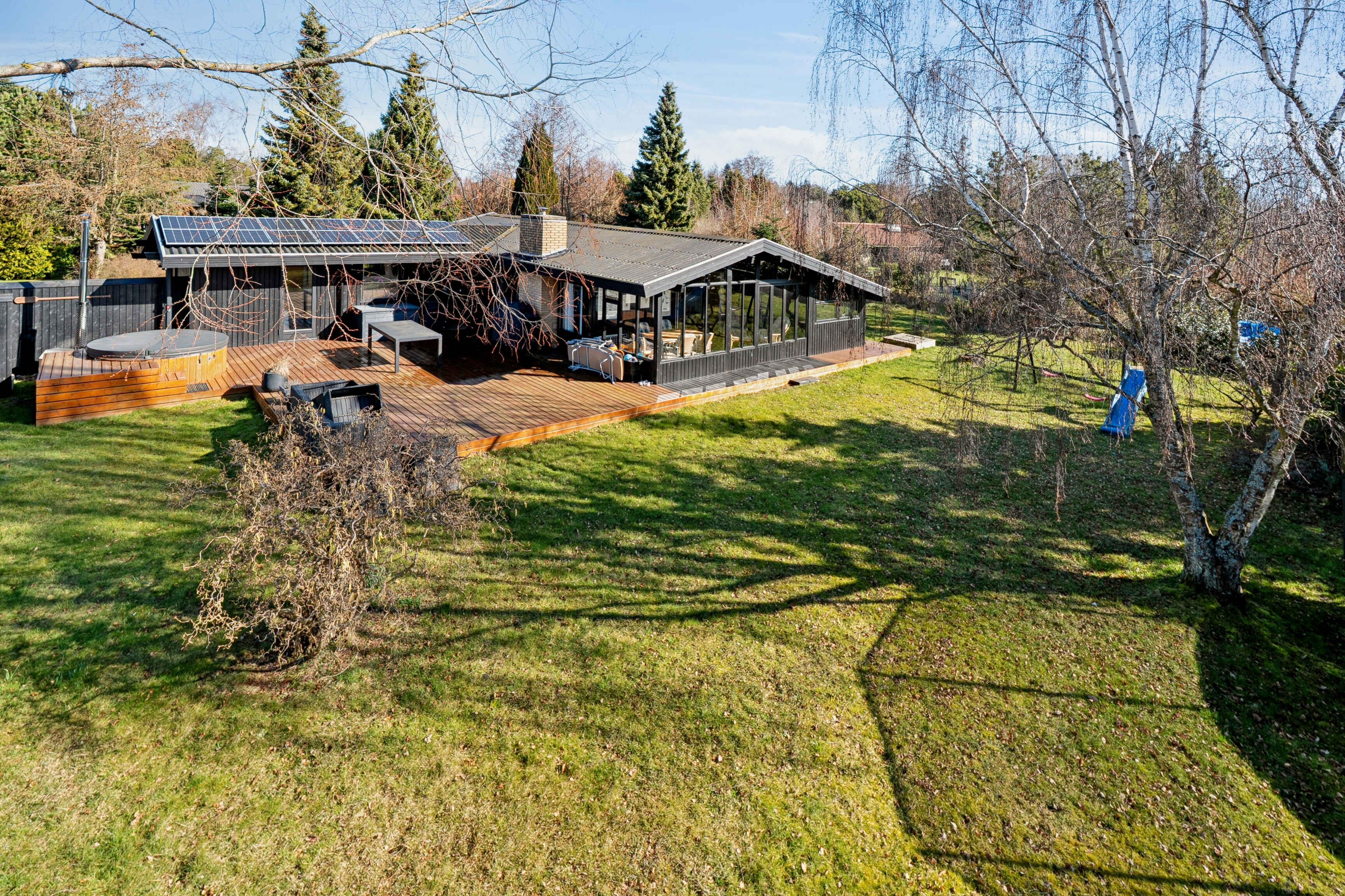 Sommerhus i Lupinerkvarteret. Huset har stor pejs og rummelig stue med opvaskemaskine, 2 terasser der er Øst vendt og Vest så man kan spise morgenmad og aftensmad under solen, dertil er der 10m2 overdækket terrasse. Boligen kommer med vildmarksspa med plads til 8 personer. Boligen har 5 min. gang til vand og købmand, og 2 min. gang til boldbaner og legeplads uden der skal krydses en vej fra stisystemer. Der er lagt op til aktiviteter og i boligen finder du brætspil, dart, basketkurv, PS4 og meget andet.