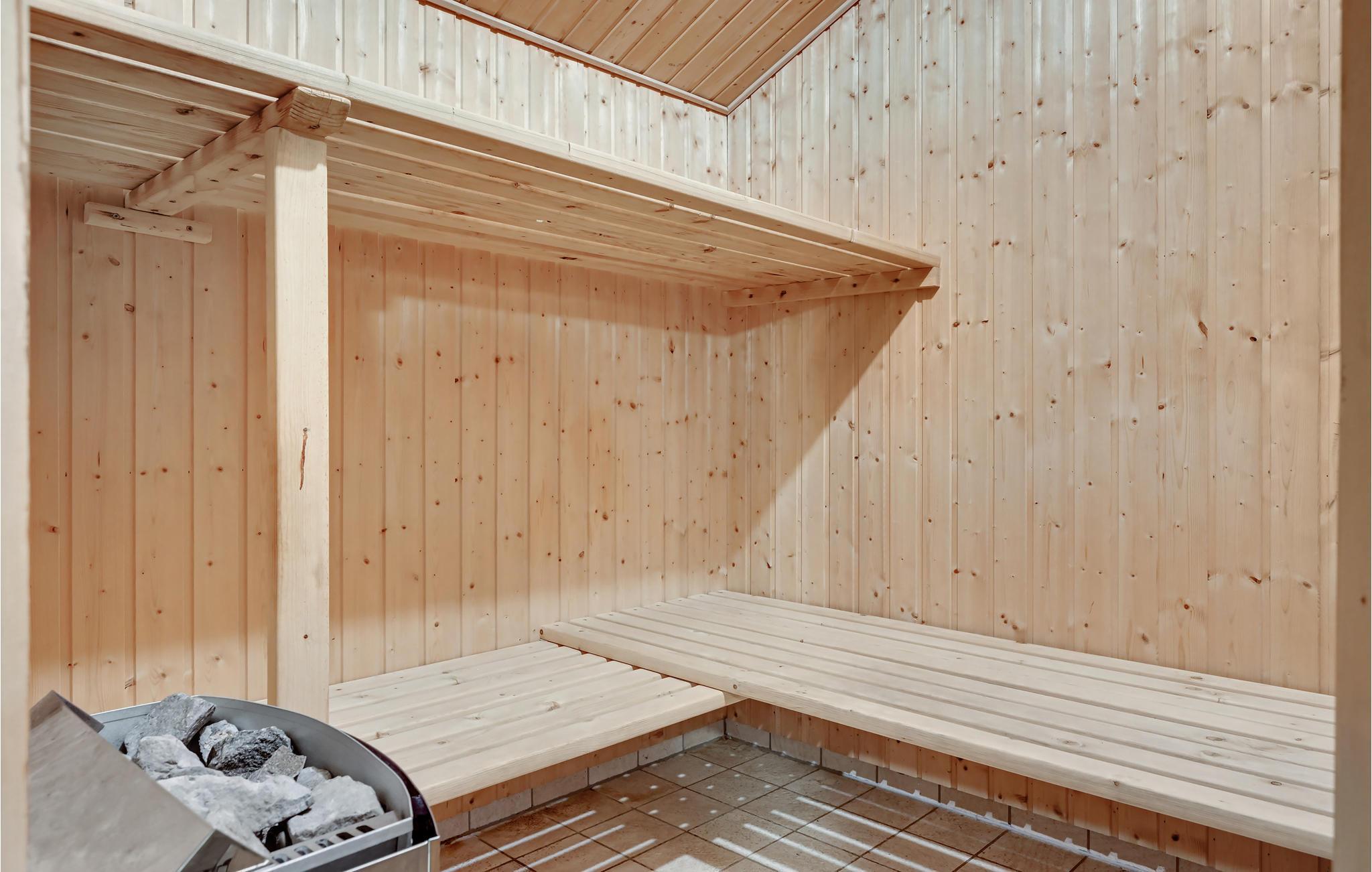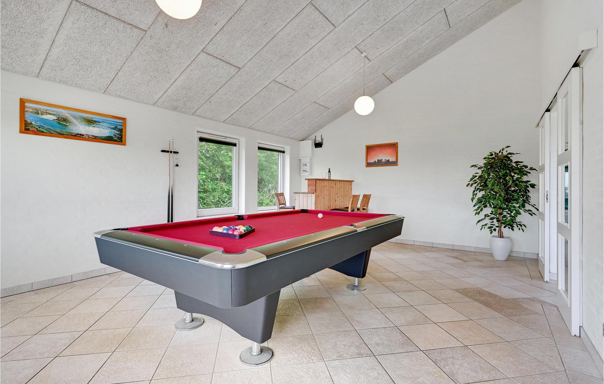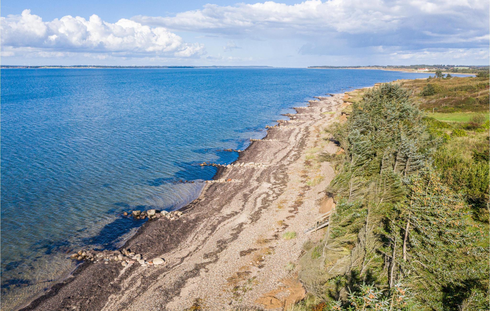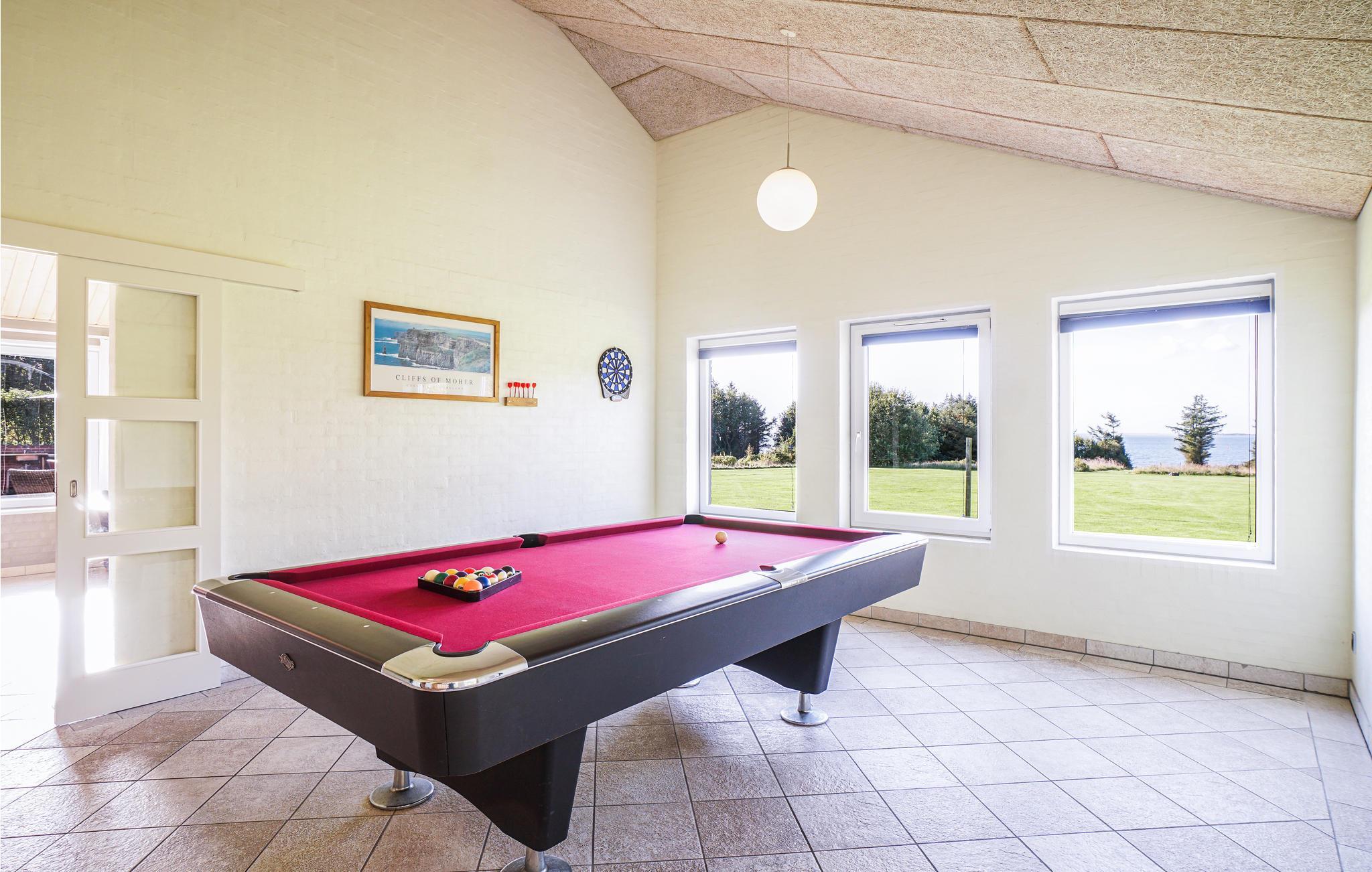 Dette rummelige feriehus har en fantastisk beliggenhed kun 25 m fra strandkanten med direkte adgang til stranden. Fra spiseafdeling, køkken, opholdsstue og aktivitetsrum er der frit udsyn over Limfjorden og man kan her nyde udsigten til øerne Mors og Jegindø samt følge alle skibene der passerer gennem Limfjorden. I huset nydes fællesskabet omkring det store spisebord med plads til 20 personer samtidig med, at man nyder udsigten over vandet. Huset er meget veludstyret med bl.a. 9 smart tv'er og parabol i stuen og soverummene. Hertil kommer en Blu-ray afspiller i stuen. Parabolen er forberedt til til Allente.