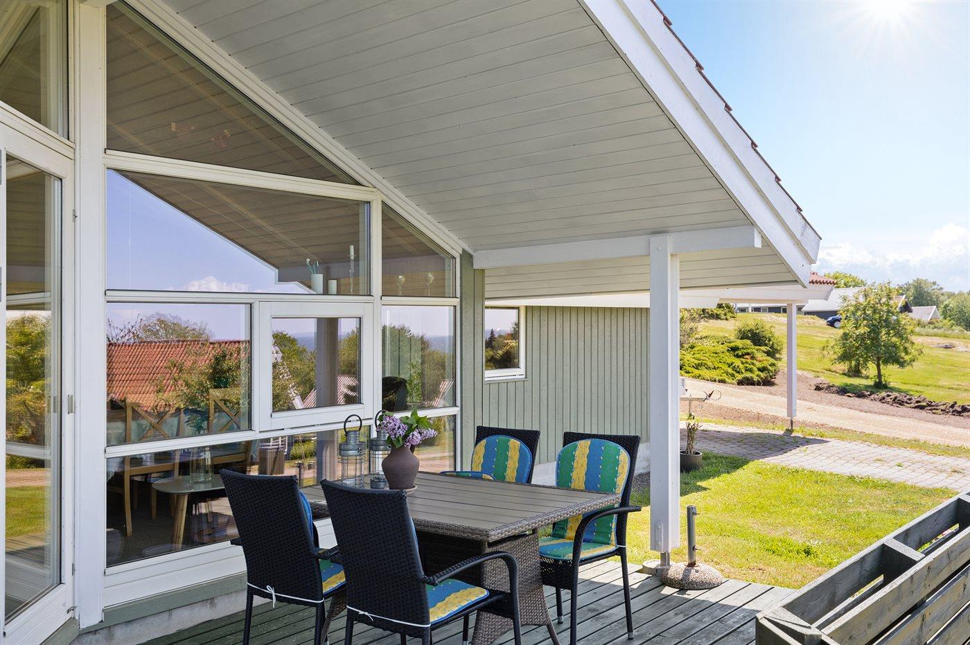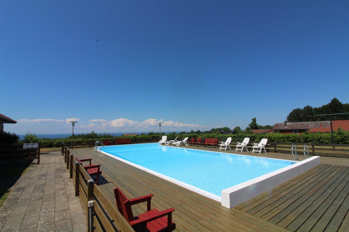 Hyggeligt sommerhus med havudsigt, sauna, spa og fælles pool nær havet i Vang, Bornholm.