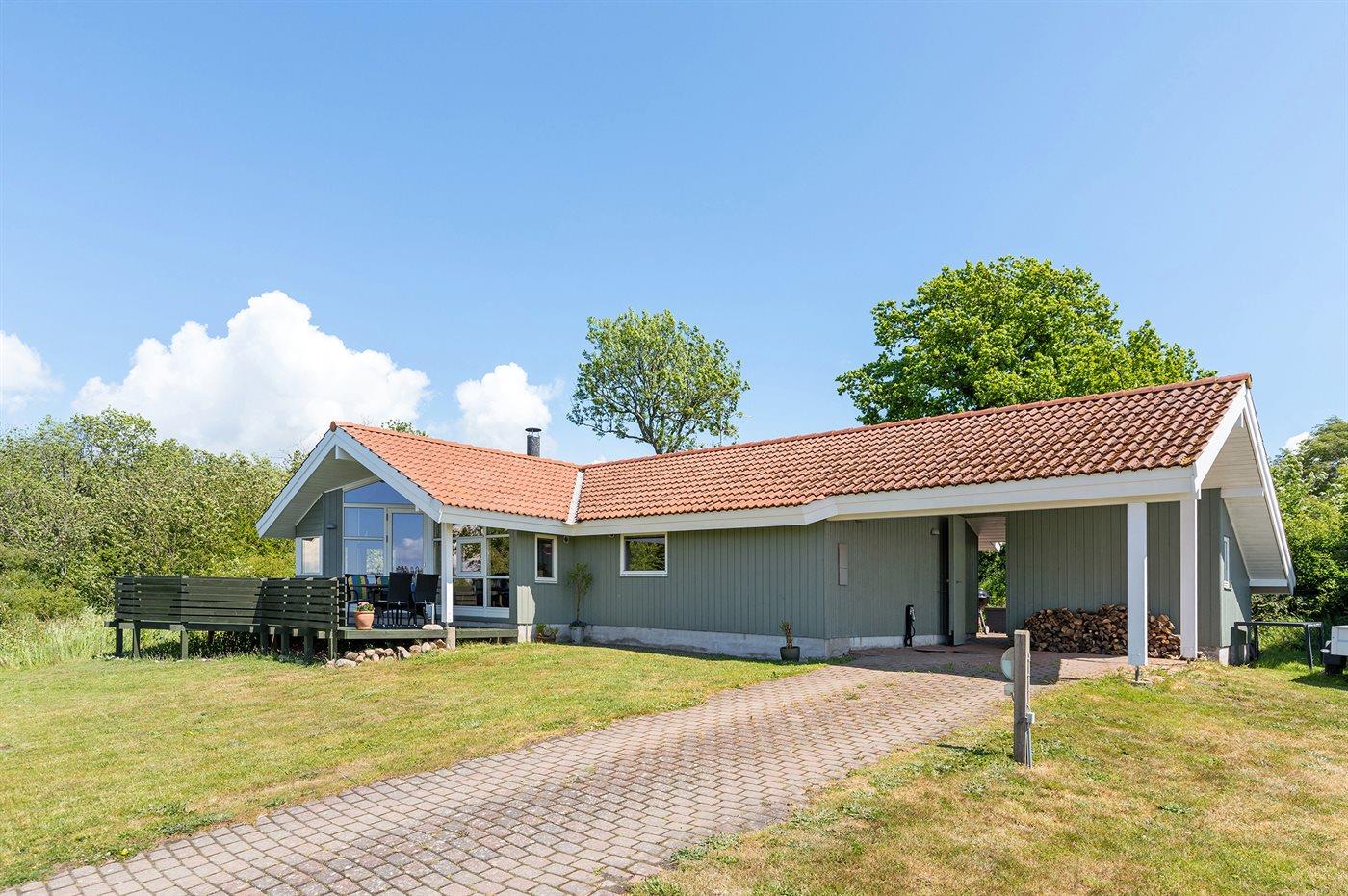 Ferieboligen er beliggende på en 1500 m² stor naturgrund. Der er 400 m til havet. Nærmeste forretning er beliggende i en afstand af 5000 m. Til ferieboligen hører 30 m² terrasseareal. Desuden er der 8 m² overdækket terrasse. Der er carport til rådighed. Der er installeret stik til opladning af elbil. Type 2 stik. Med 11 kW ladeeffekt. Parkering ved ferieboligen.