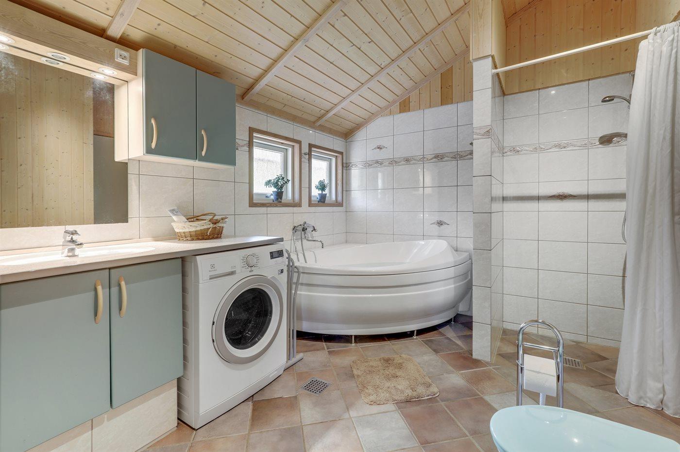 Der er 1 badeværelse med bruseniche og 2 toiletter, heraf 1 gæstetoilet. Der er gulvvarme på 1 badeværelse. Der er gulvvarme på gæstetoilettet. I saunaen er der mulighed for afslapning.