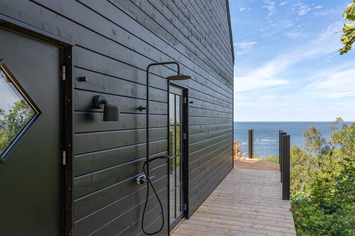 Ferieboligen er beliggende på en 1100 m² stor naturgrund. Der er 200 m til havet. Nærmeste forretning er beliggende i en afstand af 5000 m. Der er en golfbane i en afstand af 10000 m. Til ferieboligen hører 160 m² terrasseareal. Desuden er der 12 m² overdækket terrasse. Udgang til altan. Grill til rådighed. Der er installeret stik til opladning af elbil. Parkering ved ferieboligen.