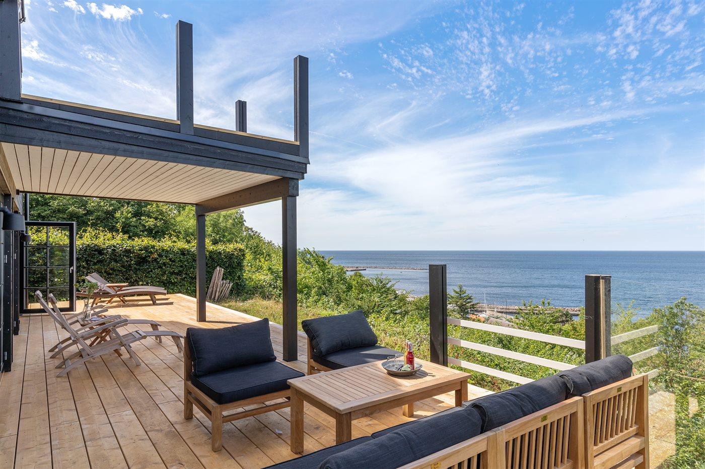 Velkommen til et moderne feriehus med fantastisk havudsigt og stor terrasse nær Vang.