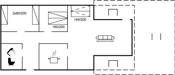 Der er i alt 2 soveværelser. Sovepladserne fordeler sig på: 4 sovepladser i elevationssenge. 2 sovepladser i sovesofa (dobbelt). 2 af disse sovepladser befinder sig i stuen.
