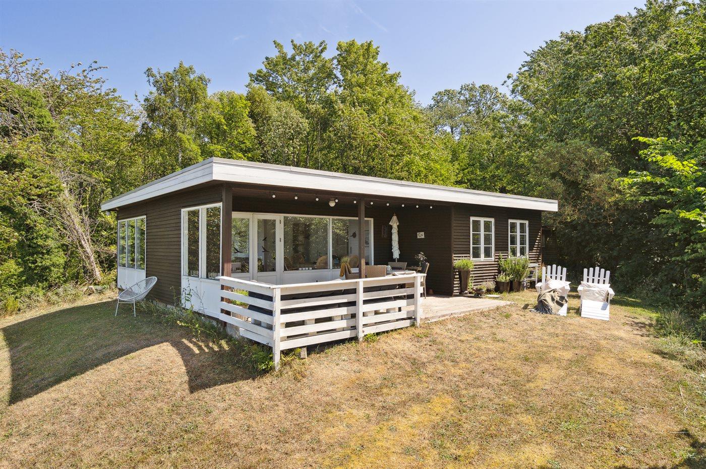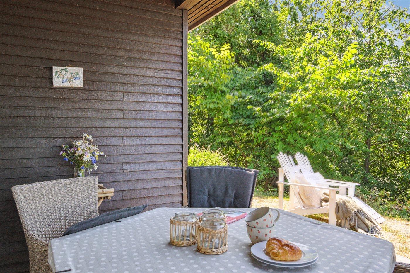 Hyggeligt sommerhus med havudsigt og overdækket terrasse ved Vang på Bornholm.
