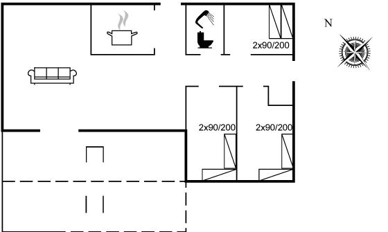 Der er i alt 3 soveværelser. Sovepladserne fordeler sig på: 2 sovepladser i dobbeltseng. 4 sovepladser i enkeltsenge.
