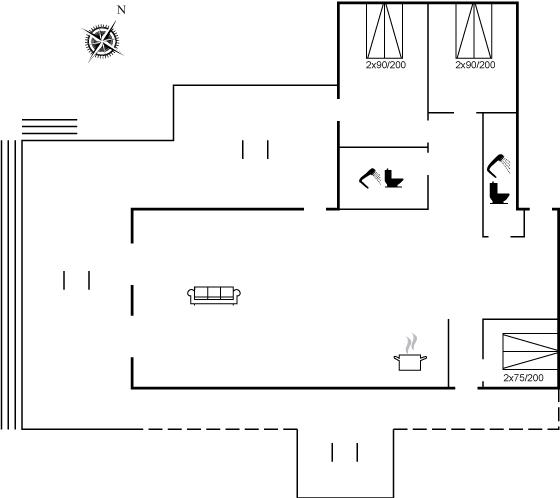 Der er 2 badeværelser med bruseniche og 2 toiletter. Der er gulvvarme på 2 badeværelser.