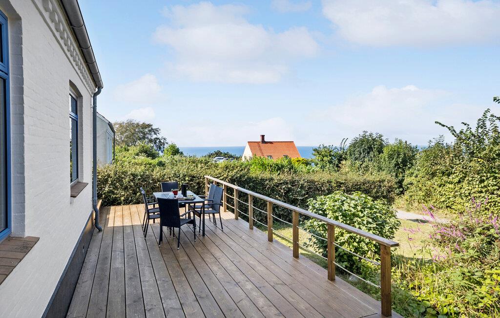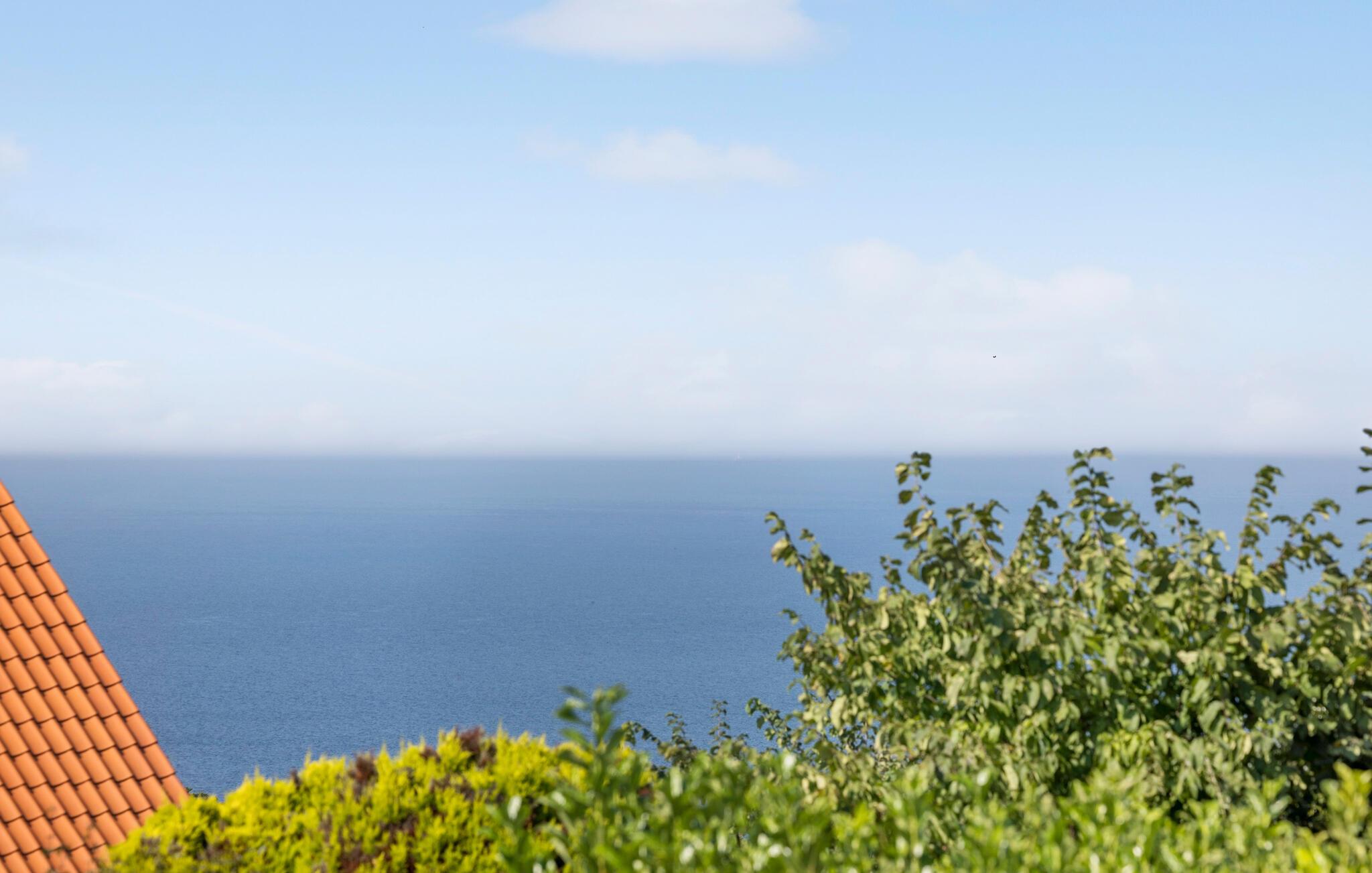 Charmerende ferievilla ved Vangs strand med panoramaudsigt og hyggelig terrasse.