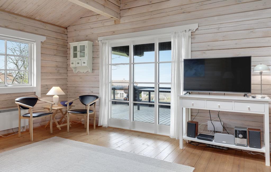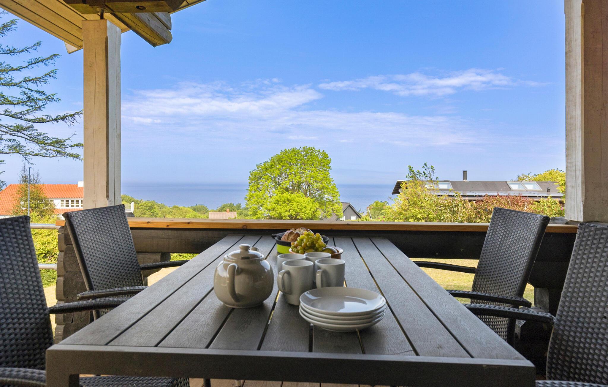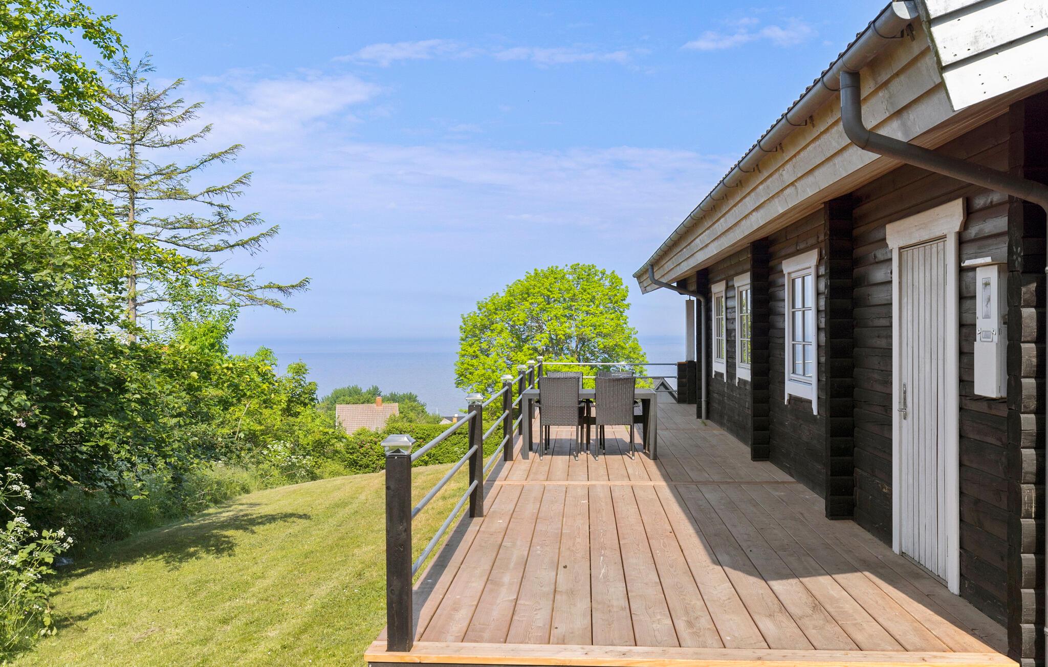 Lækkert indrettet bjælkehus med en skøn beliggenhed og udsigt til Østersøen. Det er stort og moderne indrettet med komfortable møbler og brændeovn. Fra opholdsstuen er der en skøn havudsigt og udgang til en dejlig træterrasse. Herfra kan I være heldige at nyde Bornholms flotteste solnedgang. Huset indeholder også tre store soveværelser samt en dejlig stor hems, således at der er god plads til flere familier eller mange gode venner. Hemsen er mest egnet til børn. Der er to pæne badeværelser, hvoraf det ene byder på et spabad, en mindre sauna og en meget stor bruseniche med to brusere. Husets høje komfort gør det velegnet til ferieophold året rundt.