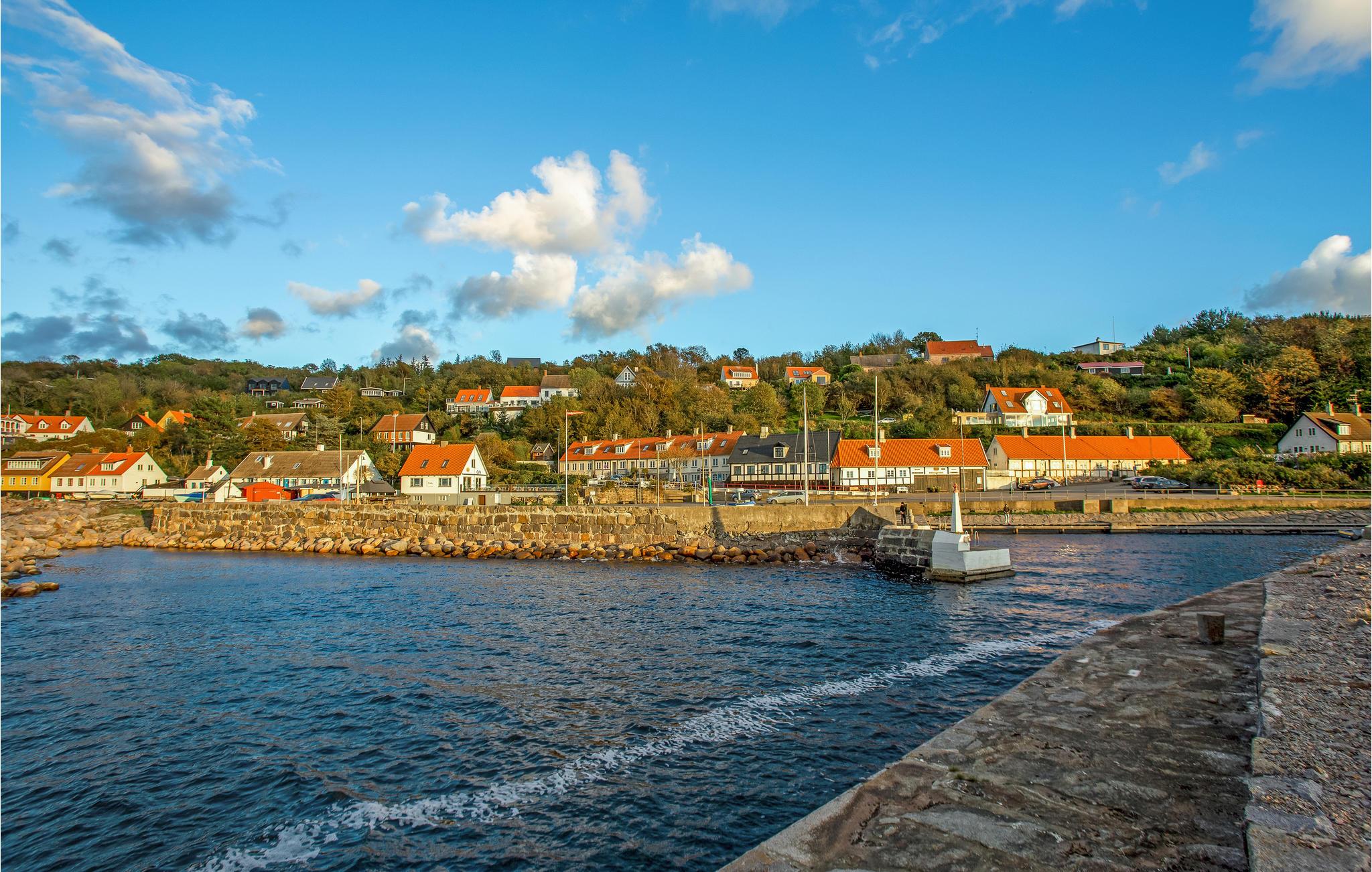 Huset er meget rummeligt og hyggeligt indrettet med synlige bjælker og en moderne møblering i den store kombinerede spise- og opholdsstue. Fra dette rum kan I nyde udsigten til Østersøen og Vang Havn med småbådene liggende til kaj. Huset rummer 2 dejlige badeværelser, det ene med spa-bad og sauna, og på 1. salen er der 2 gode værelser samt en stor repos med udsigt til Østersøen. Et charmerende og rustikt indrettet rækkehus, hvor det maritime miljø og nærheden til havet er en fornøjelse uanset årstid.