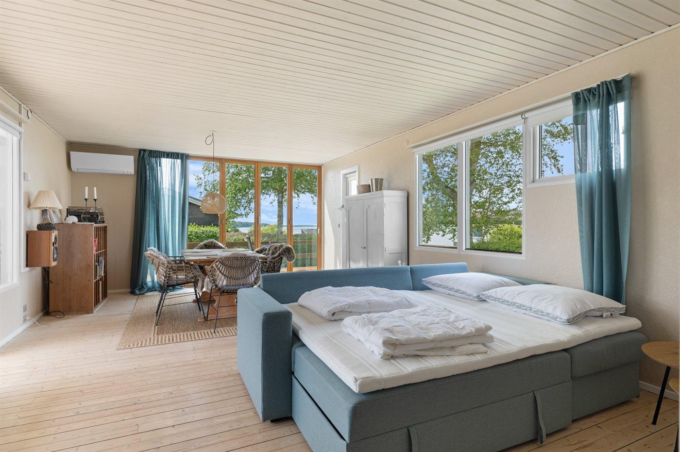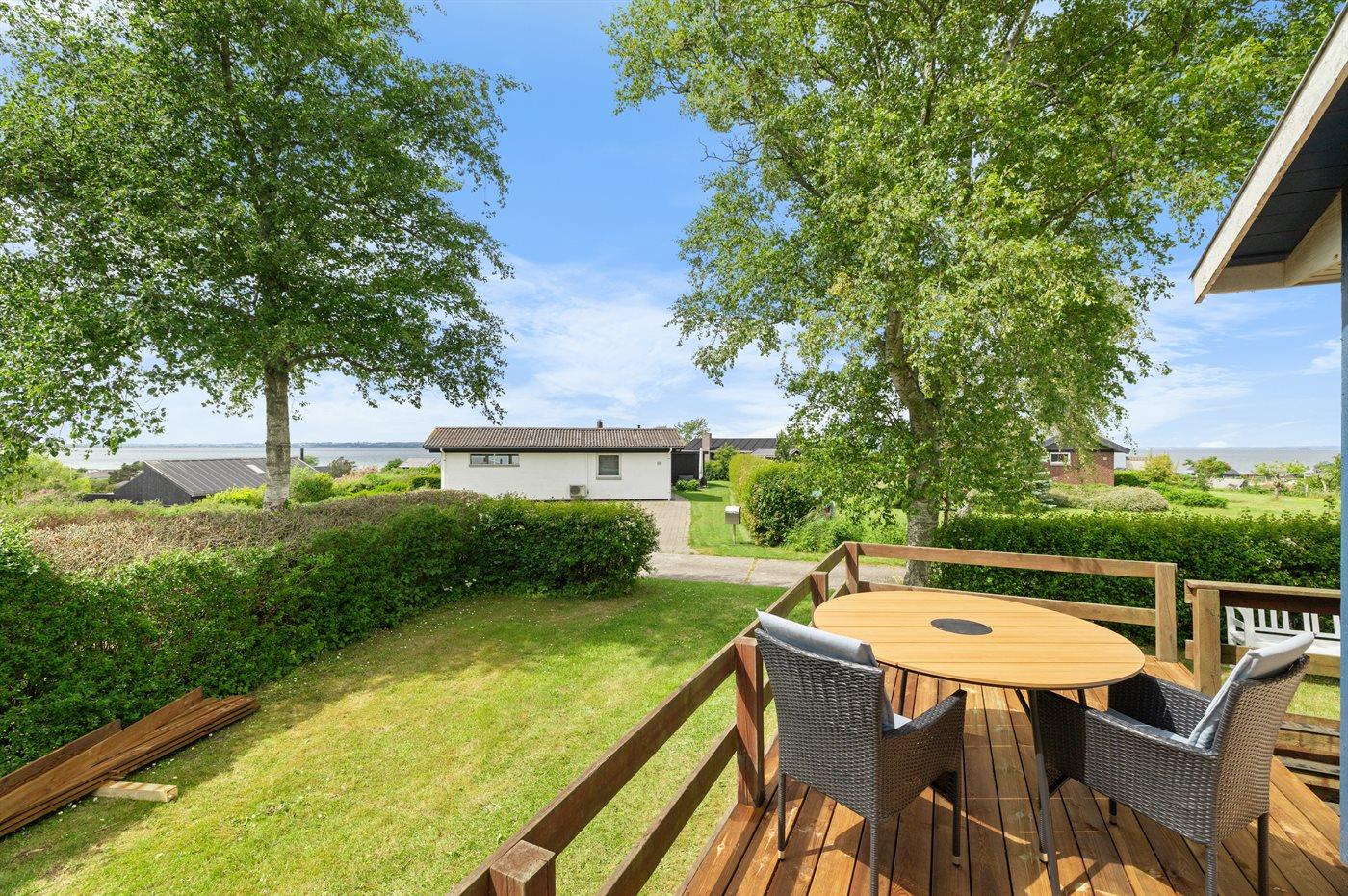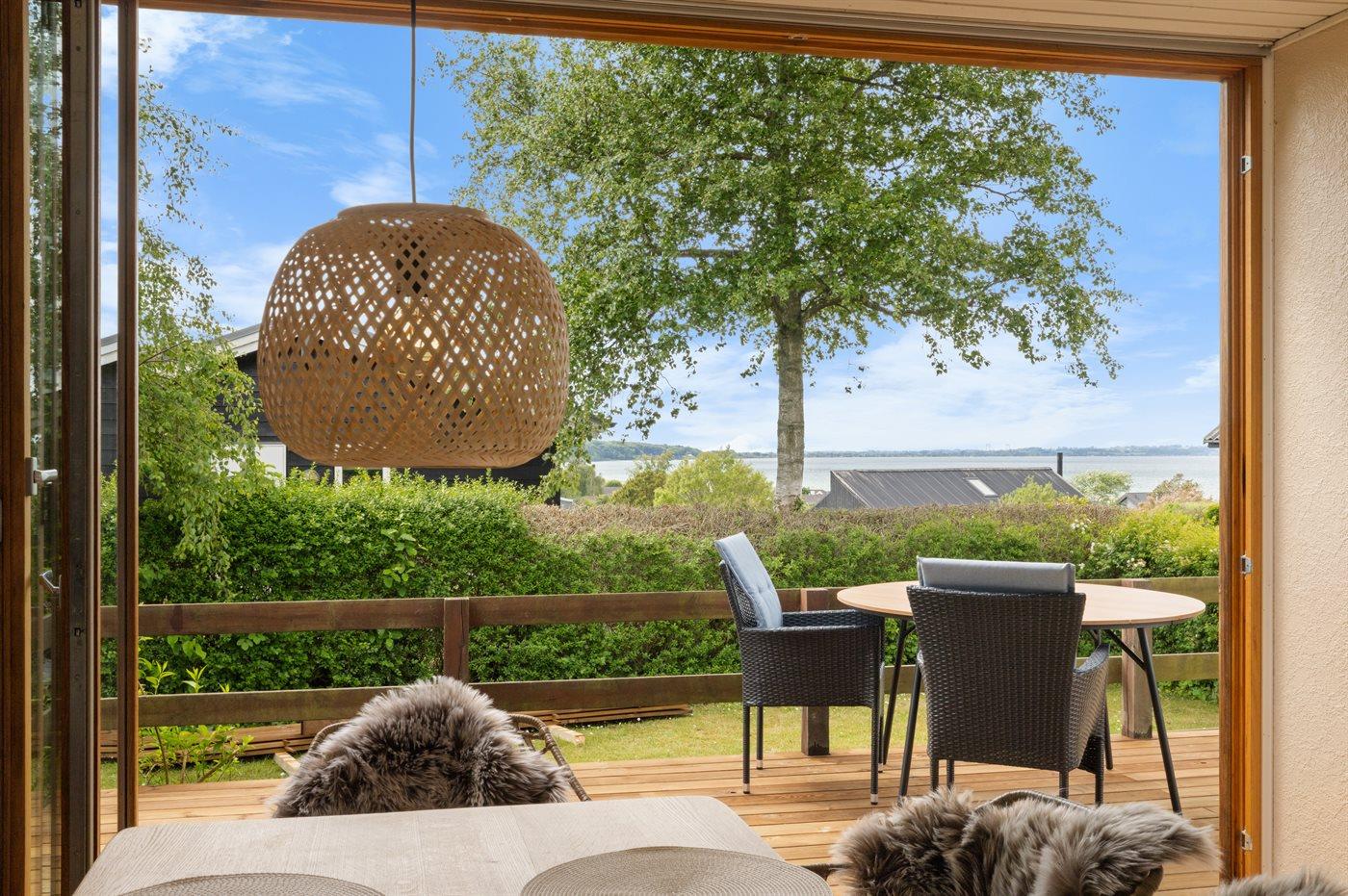 Et hyggeligt sommerhus med en skøn beliggenhed - med udsigt ud over Båring Vig og indsejlingen til Lillebælt. Både fra huset og den hævede træterrasse, kan du nyde udsigten ud over vandet.