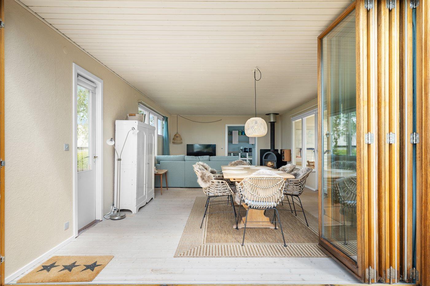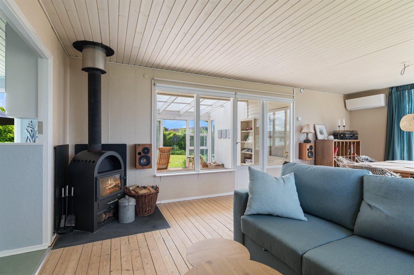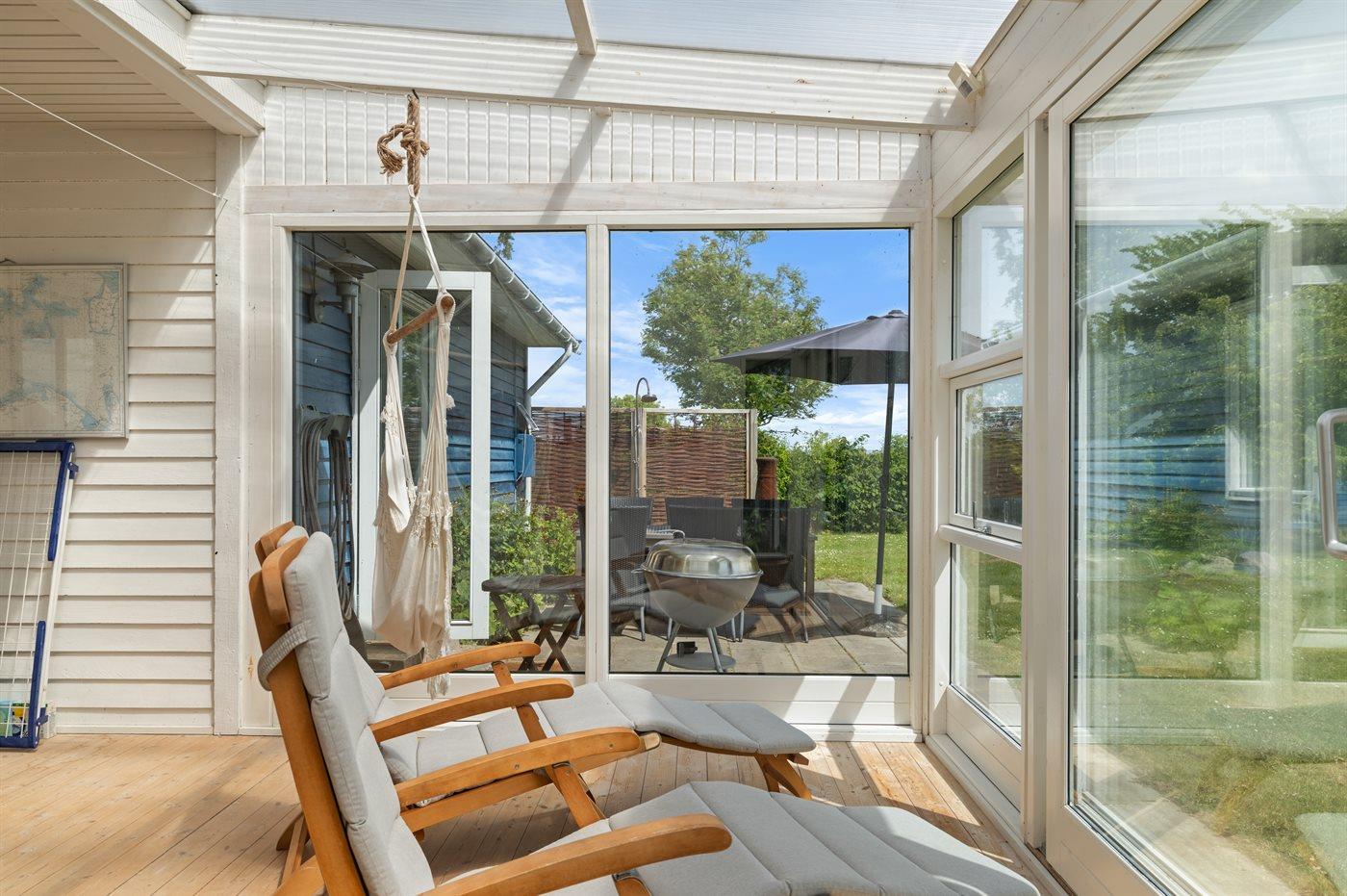 Huset er hyggeligt indrettet og har en skøn udestue på husets bagside - herfra er der udgang til den sydvendte terrasse og haven. I haven er der god plads til udendørs aktiviteter.