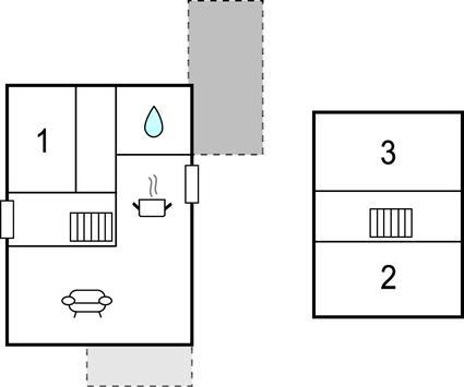 Soveværelse (nr. 1) - 2 Sovepladser. (Enkeltseng(e)).