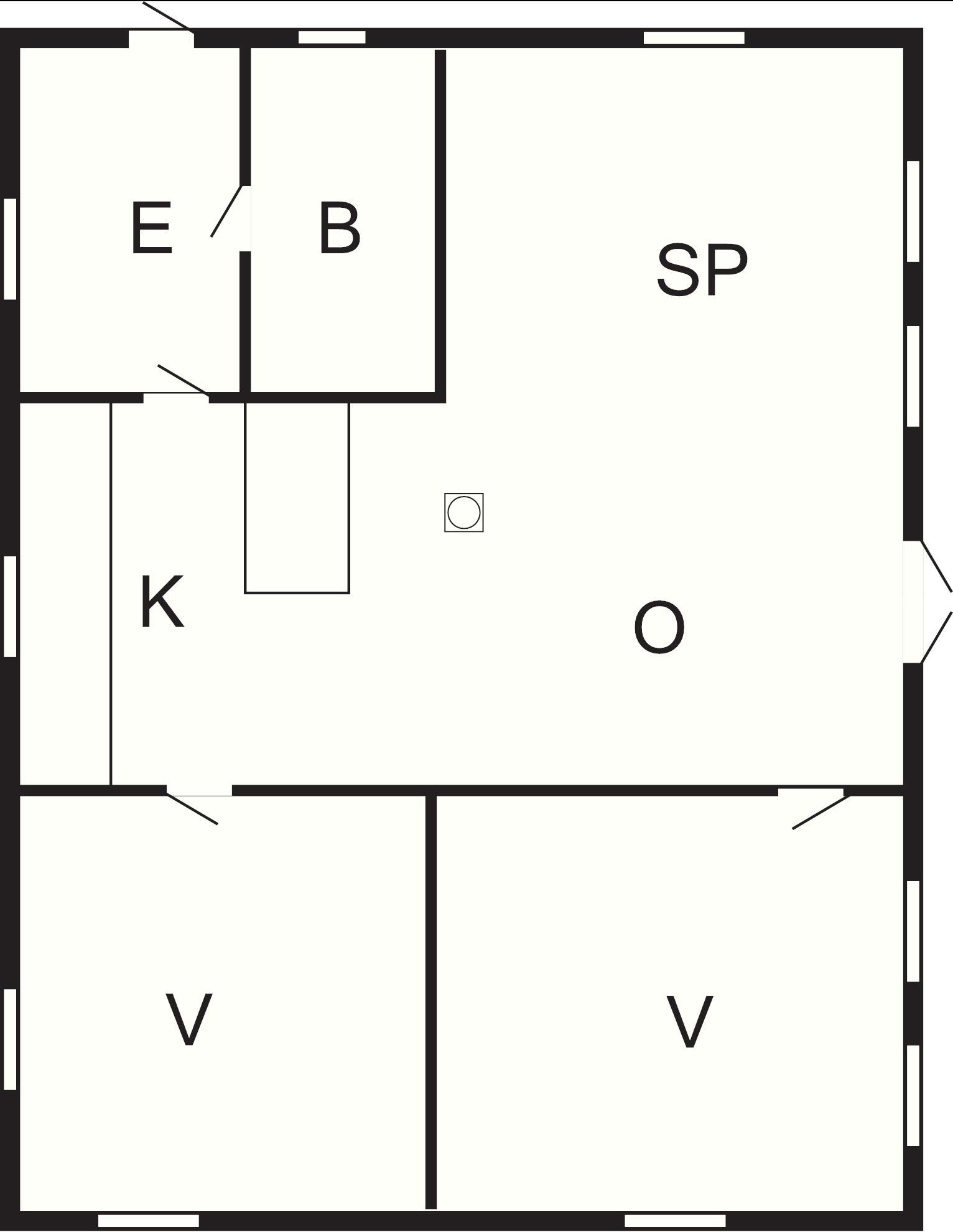 1 Opholdsstue: Brændeovn, stereoanlæg med cd, dvd-afspiller, tv, video, høj stol