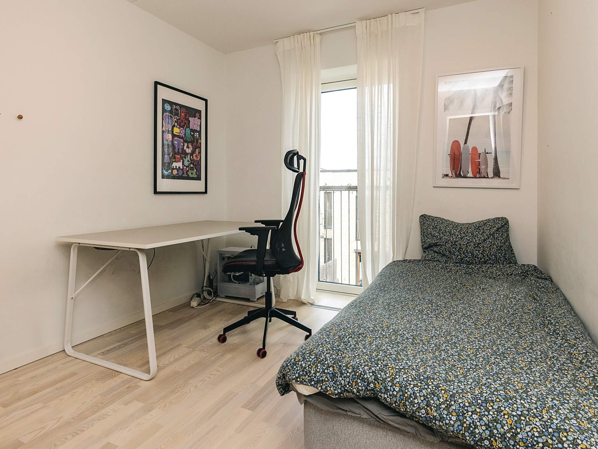 Energivenligt og svanemærket rækkehus i populære Ralphs Vænge. Huset har gulvvarme, genveks og lyse materialer, der skaber et sundt indeklima. Stueplan byder på entré/bryggers, gæstetoilet og et stilfuldt køkken i eg med kvalitetsudstyr og quooker, åbent til en hyggelig stue med terrasse. På 1. sal findes tre værelser, stort badeværelse og skydedørsgarderobe i forældresoveværelset. Der er 1 dobbeltseng, 2 enkeltsenge og de andre 2 enkeltsenge er 2 opblæsningssenge. Huset har også brandrøgalarm, vaskemaskine og tørretumbler.