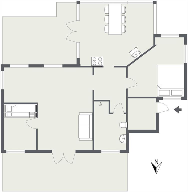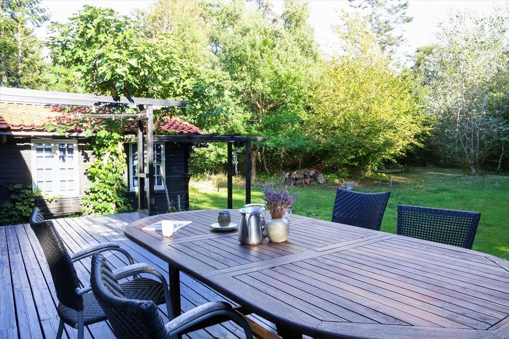 Skønt åbent og moderne køkken med dejlig spiseplads, her er der plads nok til at alle kan hjælpes med tilberedningen af en god frokost. Der er et stort master bedroom og et soveværelse mere samt et dejligt badeværelse med brus. Huset er udstyret med central støvsuger og flere skønne terrasser, hvor I kan nyde solen fra morgen til aften. Husk også at du kan benytte dig af udekøkkenet.