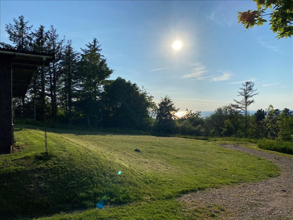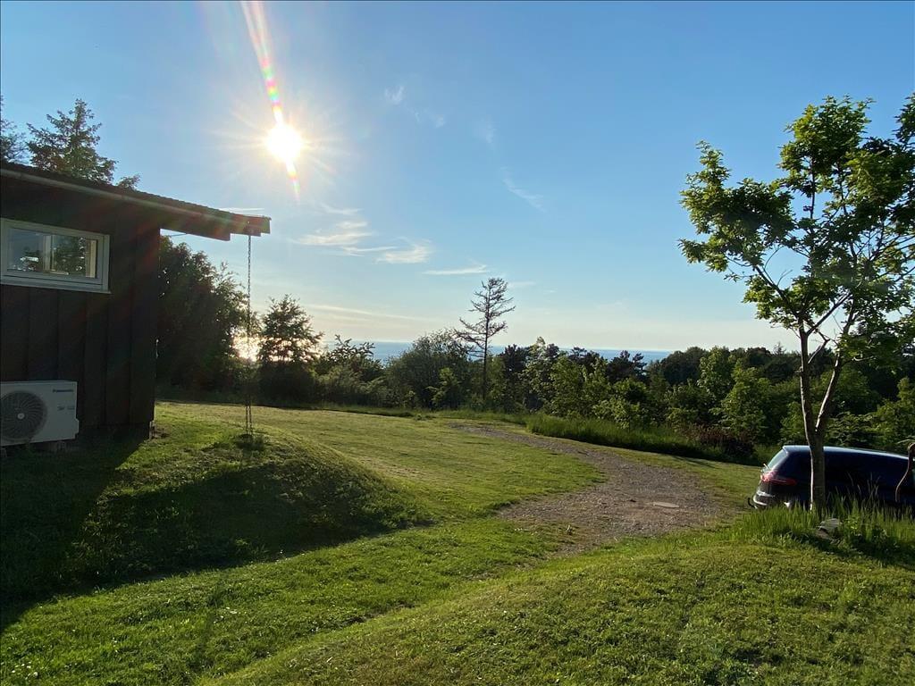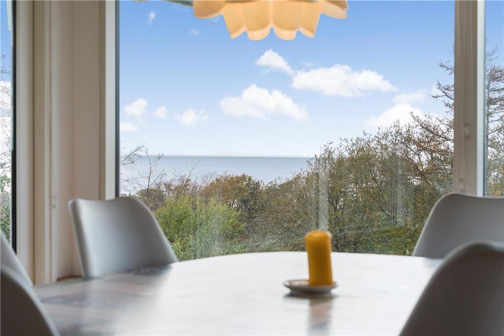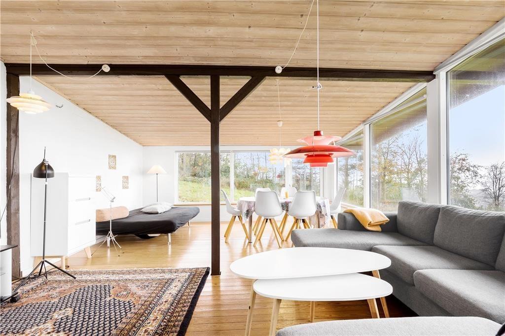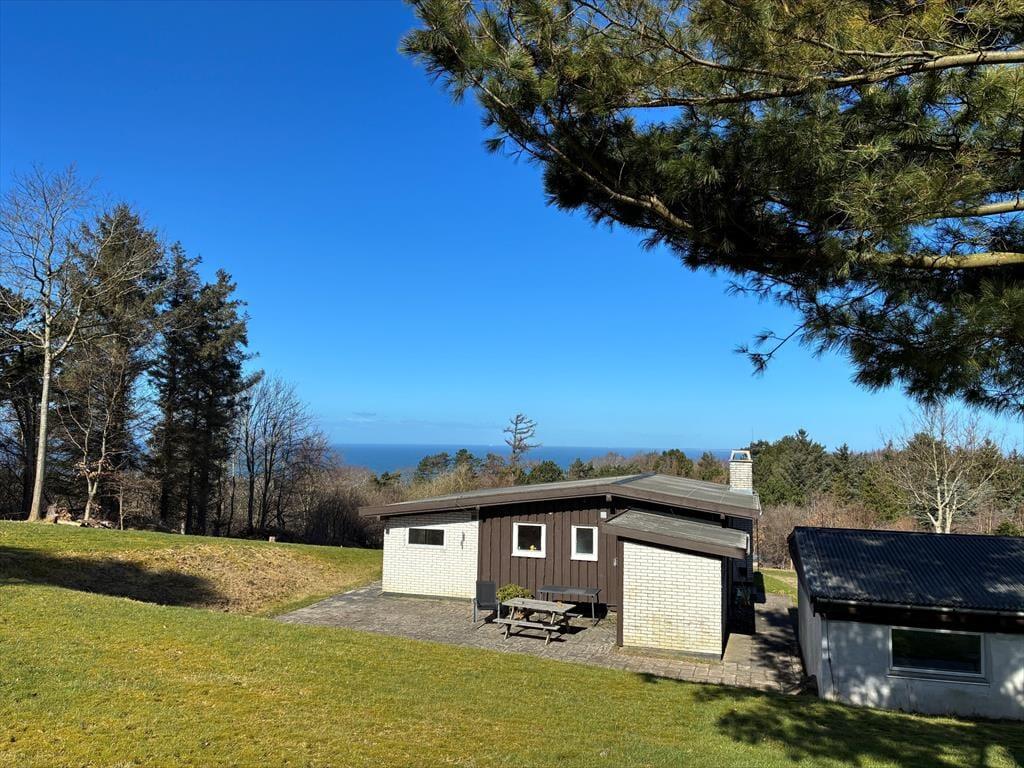 Huset ligger øverst på istidsranden. Her kan du fra panoramavinduerne se havet og træerne på den store ugenerte grund. Velegnet for 4-6 gæster og evt. en hund til en dejlig ferie i Odsherred tæt på lækre badestrande, oldtidsminder, købstæder, indkøbscenter, havne, Sommerland Sjælland, Odsherred Dyrepark og meget mere.