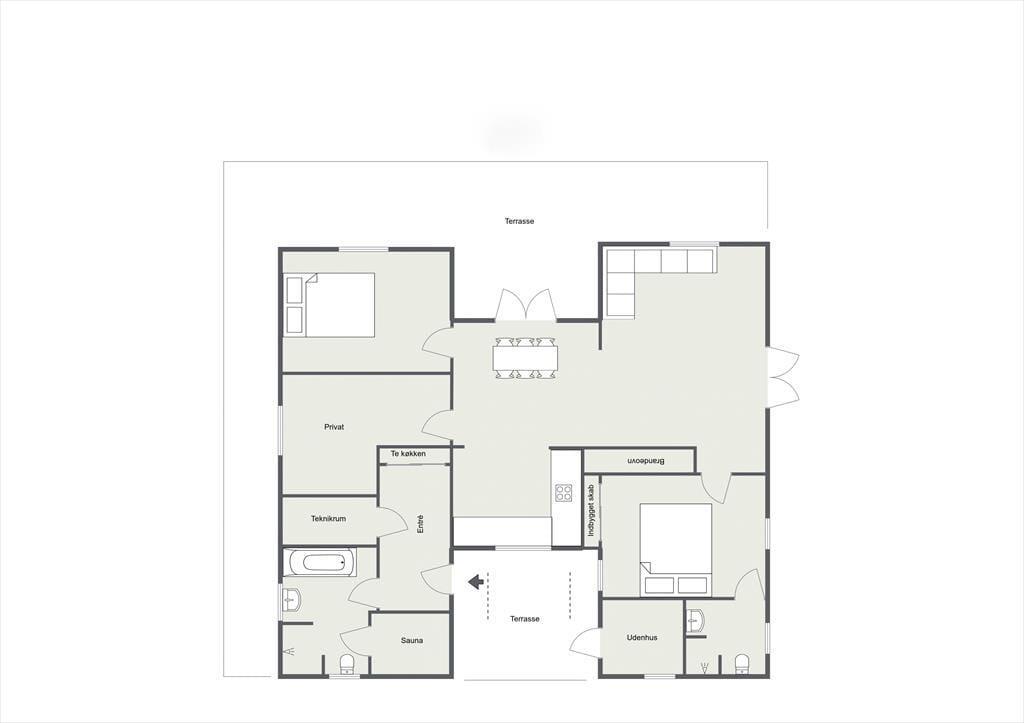 I sommerhuset, vil du med det samme fornemme stemningen af luksus i perfekte rammer. Du vil hurtigt få skuldrene ned og mærke, at det endelig er tid til ferie. I den dejlige stue, der er placeret i forbindelse med det åbne køkken, kan I samles omkring spisebordet til et brætspil eller en god frokost. Her er der ligeledes mulighed for at få en god samtale i sofaarrangementet, over en kop friskbrygget kaffe. Der er to skønne soveværelser med dobbeltsenge til din disposition. I det dejlige badeværelse i forbindelse med master bedroom, er der både sauna og spabad til rådighed, hvis du virkelig trænger til at blive forkælet. Alt i og omkring huset, fremstår lyst og lækkert.