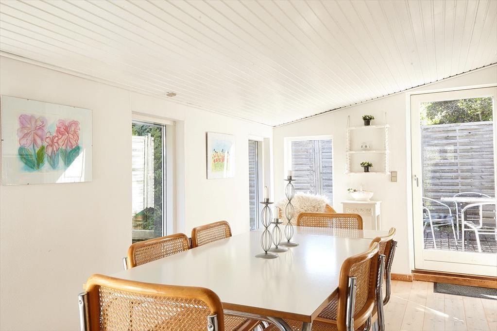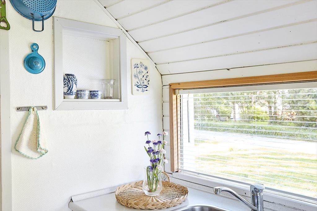 Det charmerende ældre sommerhus ligger tæt på vandet og byder indenfor i et typisk dansk sommerhus. Her skal du bo hvis du sætter beliggenhed og hygge højere end luksus. I det hyggelige køkken er der god plads til at fremtrylle dagens måltider, som I kan hygge jer med ved spisebordet. I stuen kan I tale om dagens oplevelser og planlægge for næste dag, og får I brug for varme, står brændeovnen klar i stuen.